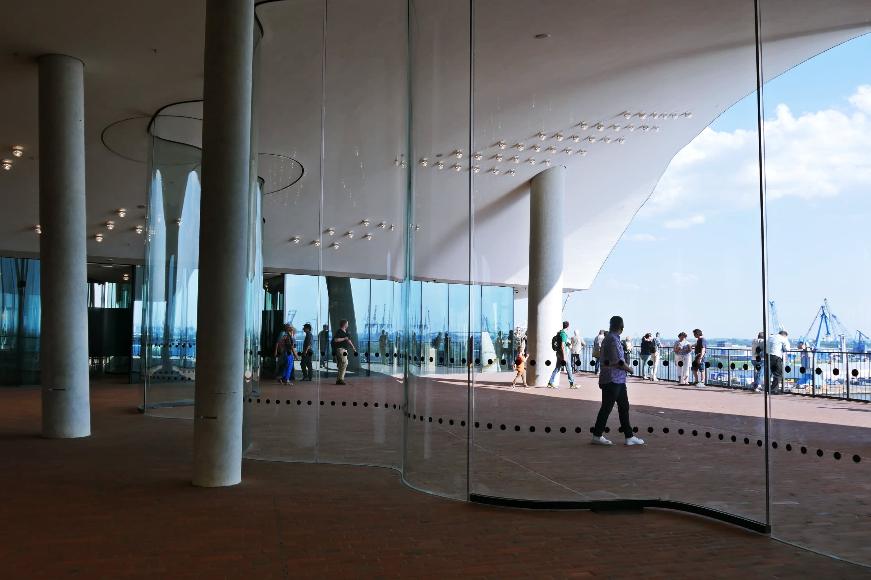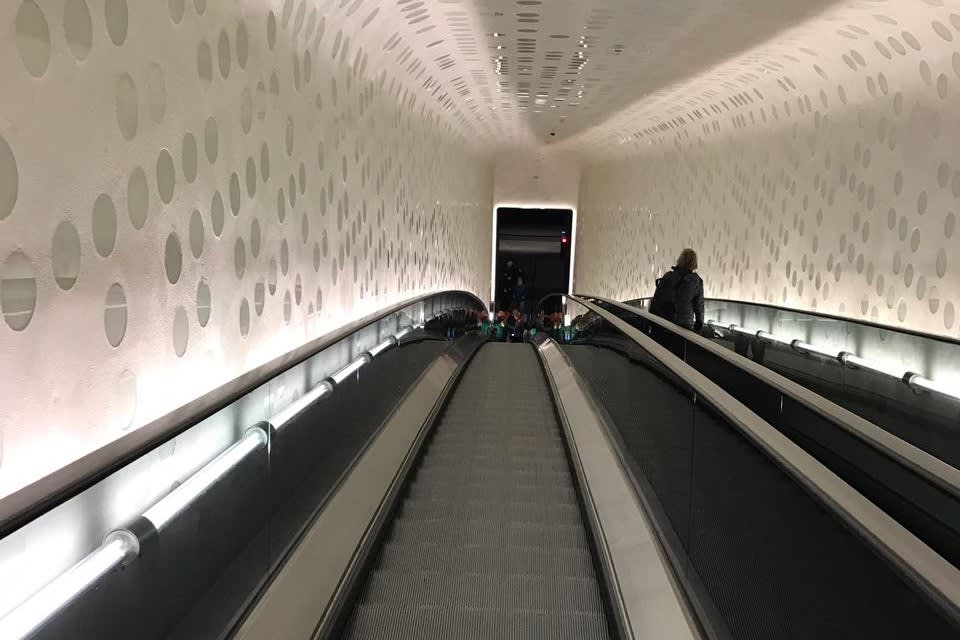 * "튜브" 에스컬레이터를 타고 엘필하모니 플라자와 Störtebeker Deck & Deli로 이동하세요.