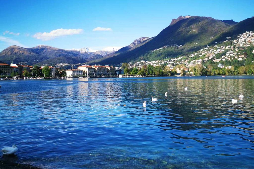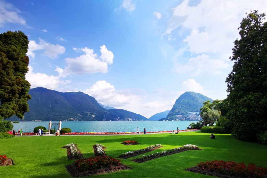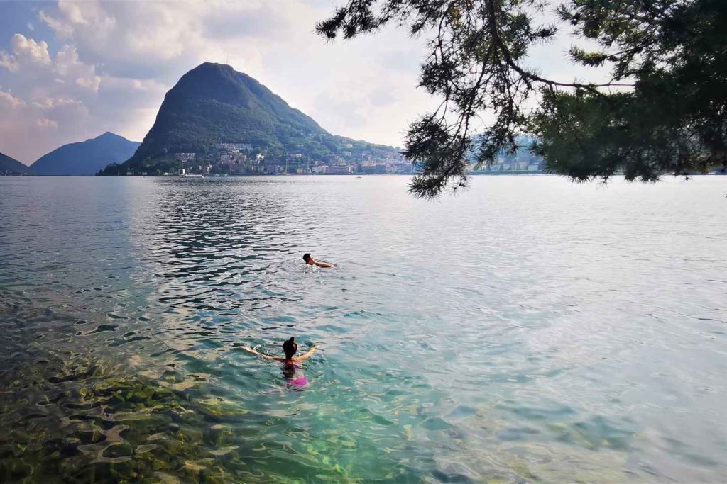 더운 여름 날에 크리스탈처럼 맑은 알프스 루가노 호수의 물에서 수영을 즐겨보세요.