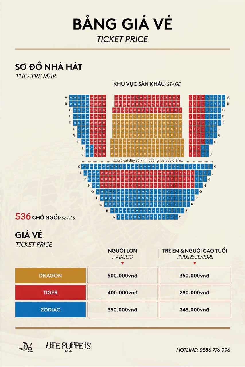 60분간의 공연을 관람한 후에는 베트남 사람들과 그들의 창의성에 대한 새로운 인식을 얻게 될 것입니다! 세 가지 좌석 중에서 자유롭게 선택하여 공연을 색다르게 느껴보세요.