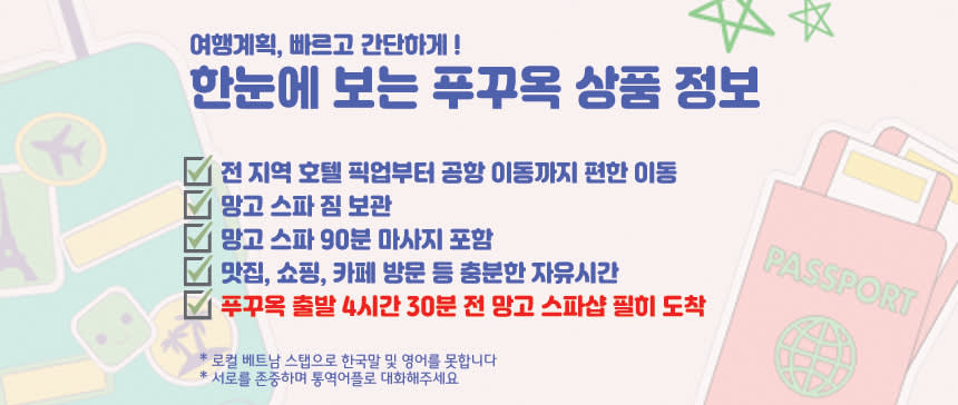 ✅푸꾸옥 출발 4시간 30분 전 망고 스파샵 필히 도착