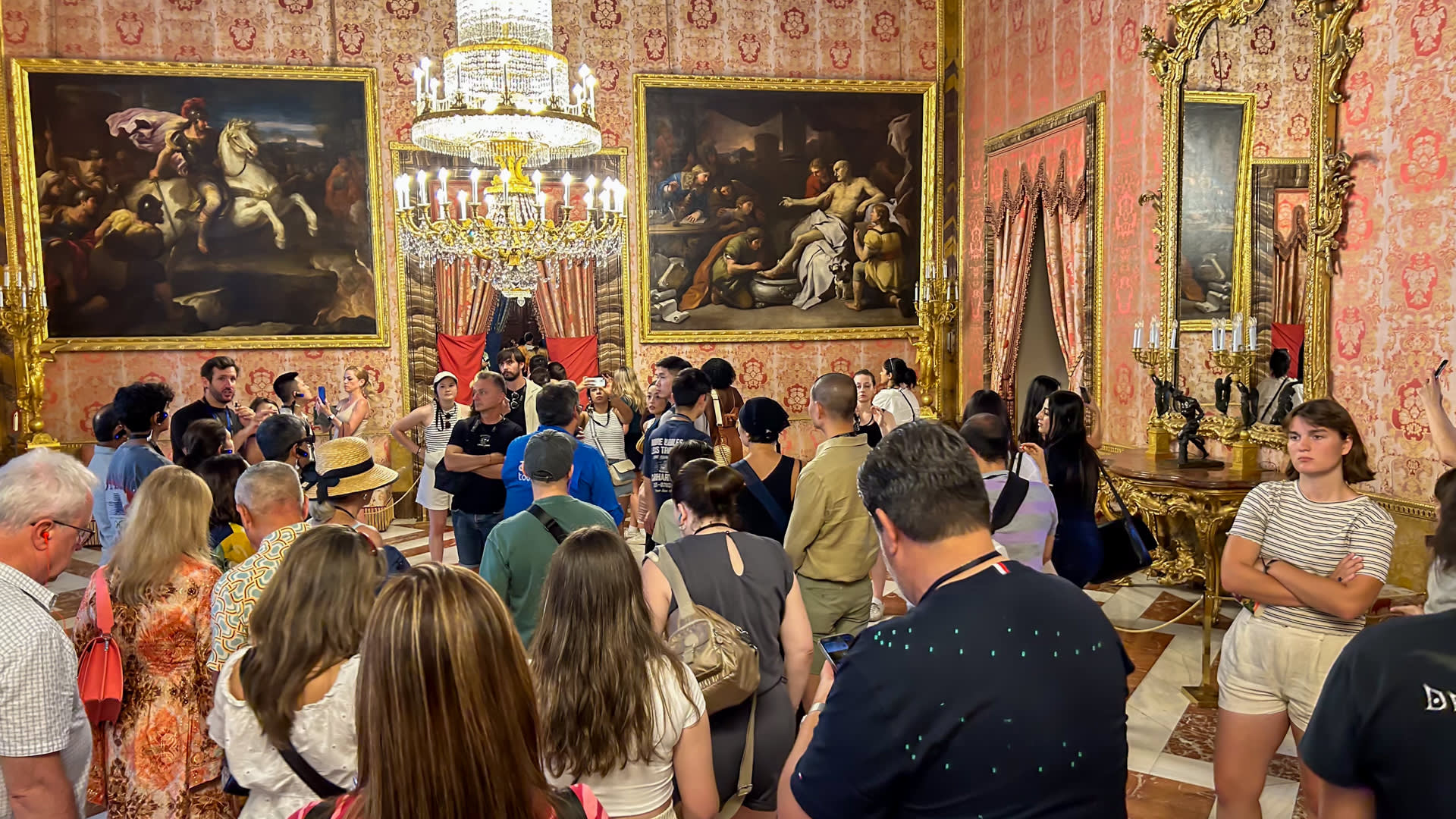 왕궁에 들어가 왕족이 된 듯한 기분을 느껴본 적이 있으신가요? 이제 스페인 왕들의 옛 거주지이자 100만 평방 피트가 넘는 유럽 최대 궁전 중 하나인 마드리드 왕궁에 내부 출입하여 그 꿈을 이룰 수 있습니다. 줄을 서지 않고 전문 가이드와 함께 웅장한 홀, 우아한 방, 인상적인 계단을 둘러보세요. 금빛 장식, 붉은 벨벳, 멋진 샹들리에, 티에폴로의 천장화가 있는 알현실이나 사바티니가 설계한 웅장한 계단을 놓치지 마세요. 스페인의 왕실 역사를 생생하게 느낄 수 있는 방문이 될 것입니다.
