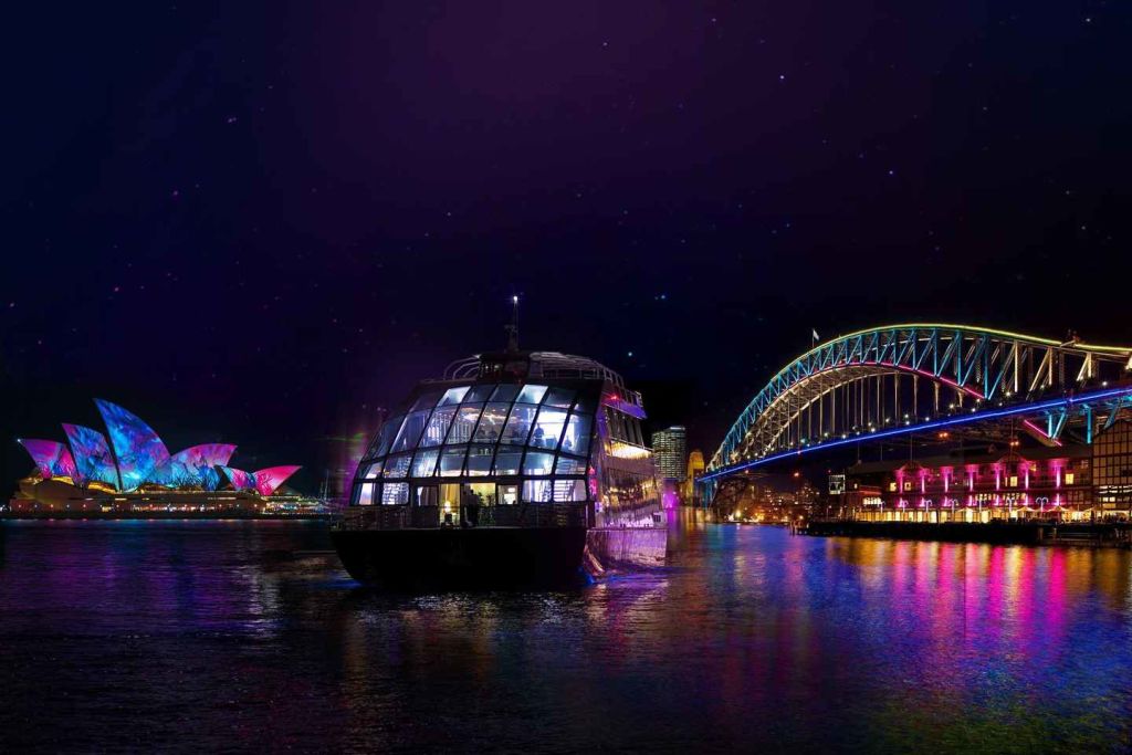 유리 보트 크루즈의 최상급 관측 장소에서 비비드 시드니의 화려한 변화를 즐겨보세요. 유리 보트의 럭셔리함과 밤의 시드니 하버의 아름다움이 결합된 독보적인 파인 다이닝 이벤트를 경험하세요.