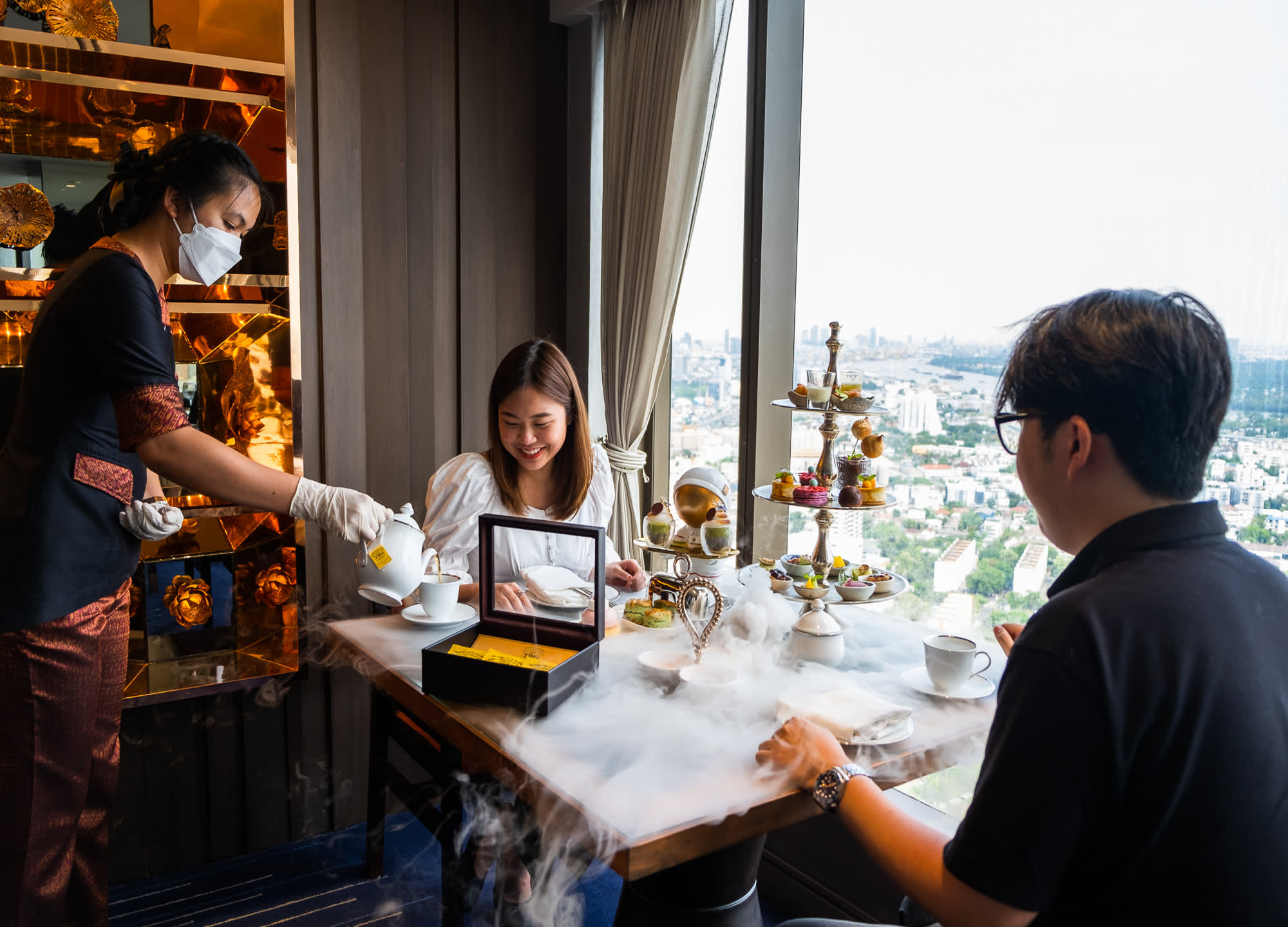 도심 위 60층, 차오프라야강과 방콕의 스카이라인이 한눈에 펼쳐지는 공간에서 시그니처 애프터눈 티를 즐겨보세요.