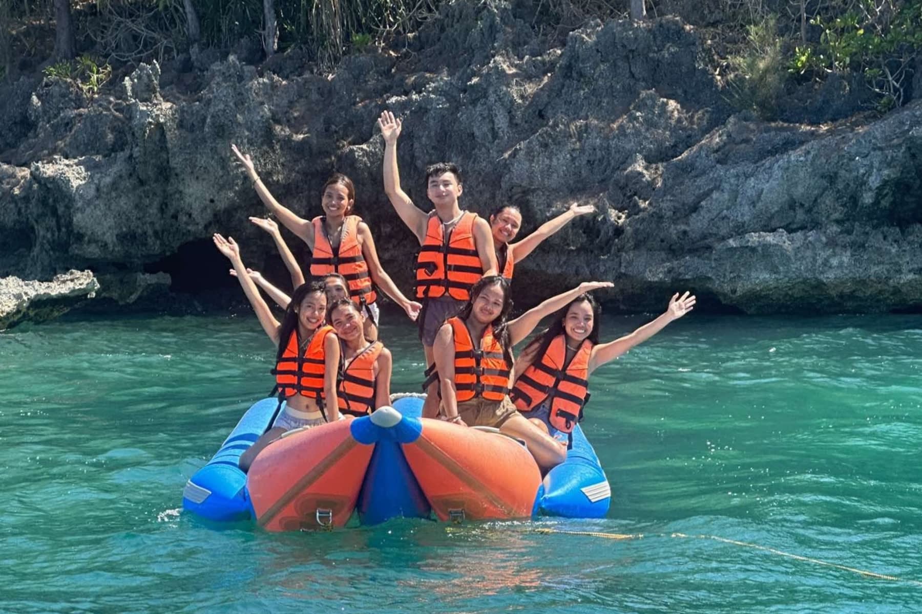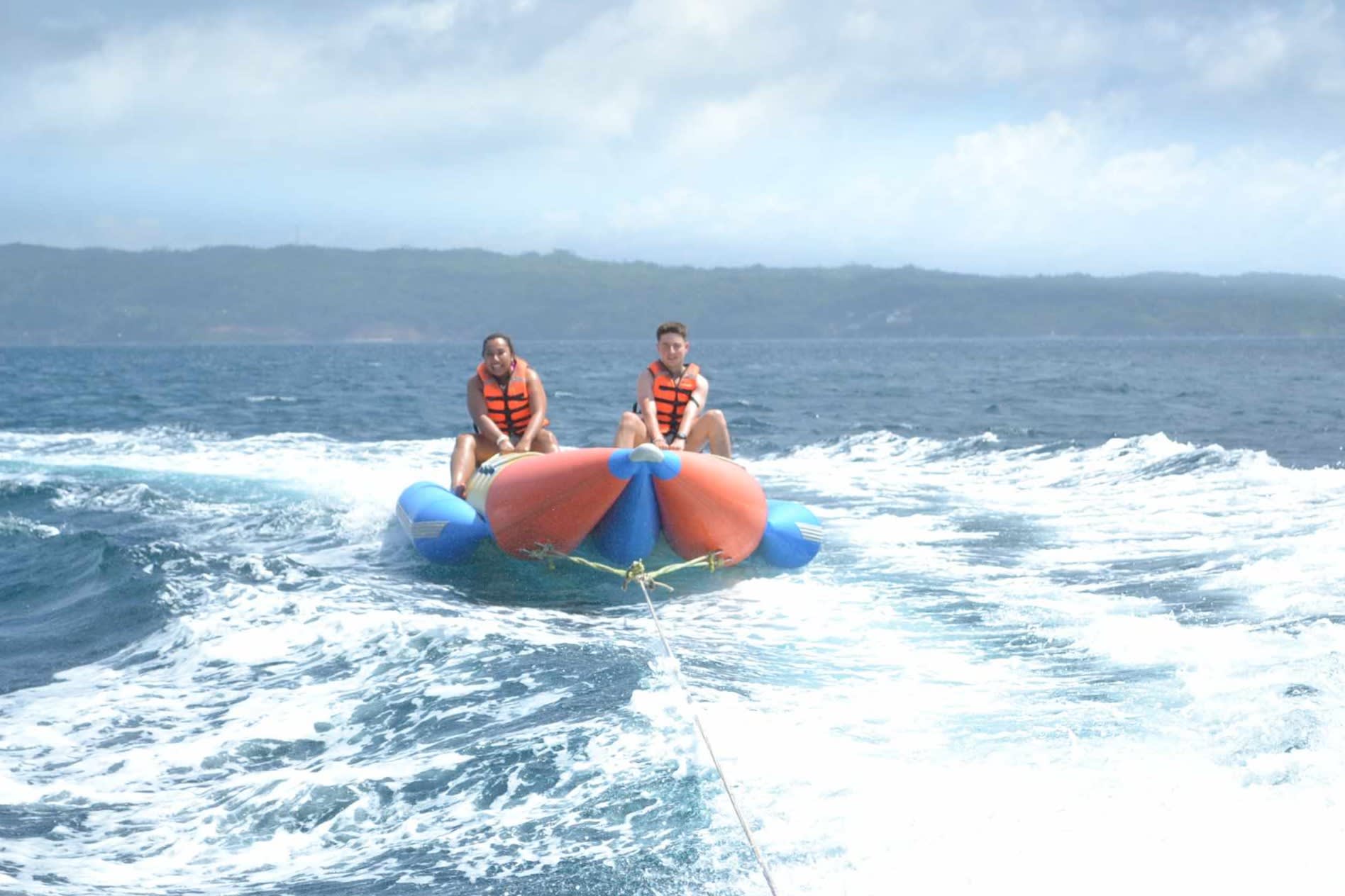 생동감 넘치는 바나나 모양의 튜브에 올라타 팡라오의 수정처럼 맑은 바다를 질주하며 신나는 시간을 보내세요. 바람을 가르며 햇살을 만끽하고, 파도를 가르며 짜릿한 스릴을 느껴보세요. 친구, 가족과 함께 잊지 못할 추억을 만들어보세요.