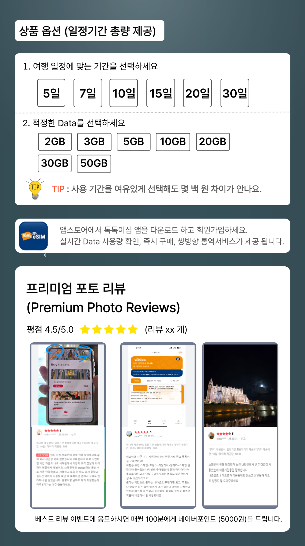 • 톡톡이심과 함께라면, 여행 중에도 끊김 없는 연결을 통해 소중한 순간들을 기록할 수 있습니다.