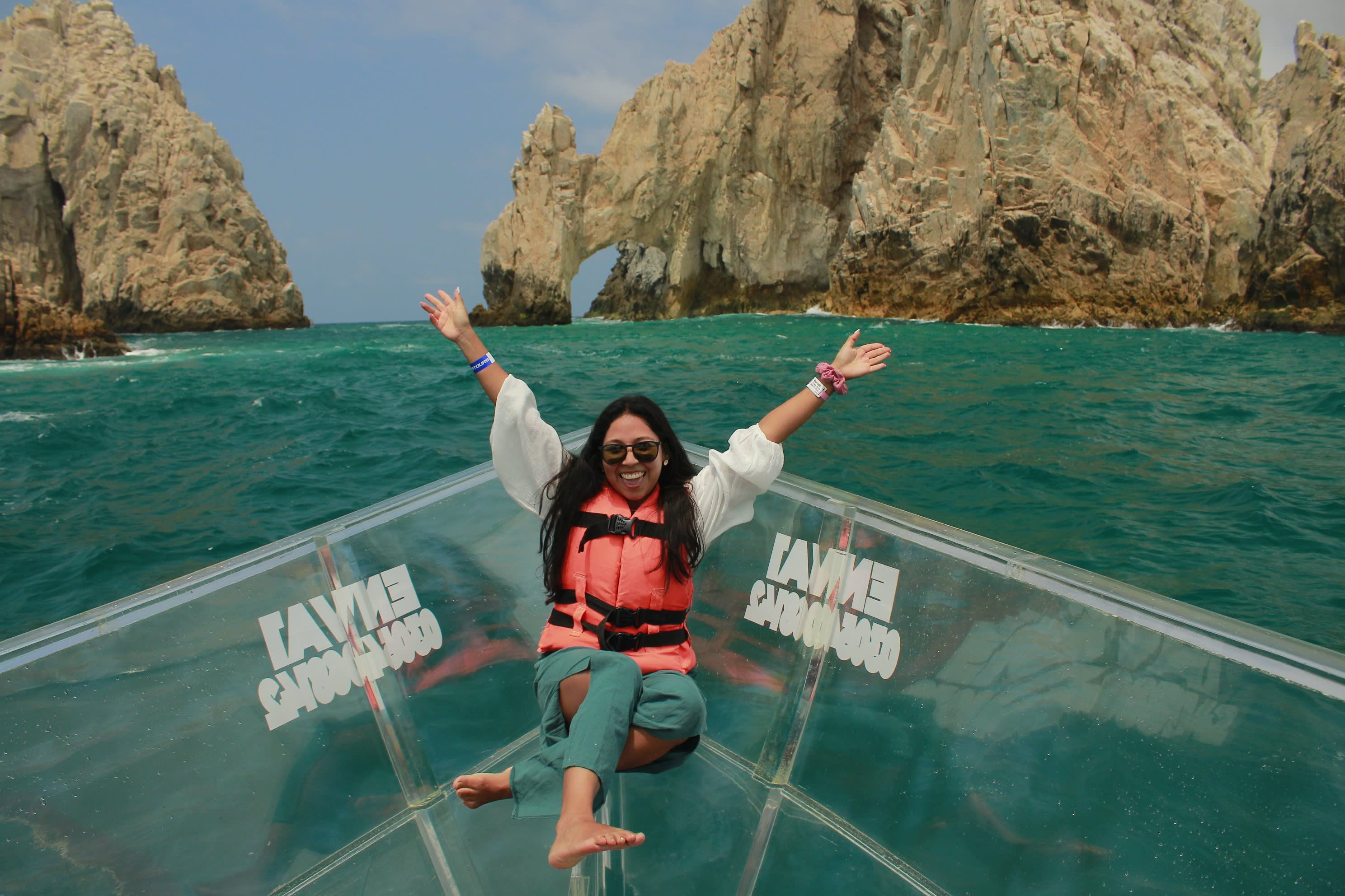 * 유리 바닥 보트를 타고 경외심을 자아내는 카보산루카스 아치를 감상하세요.