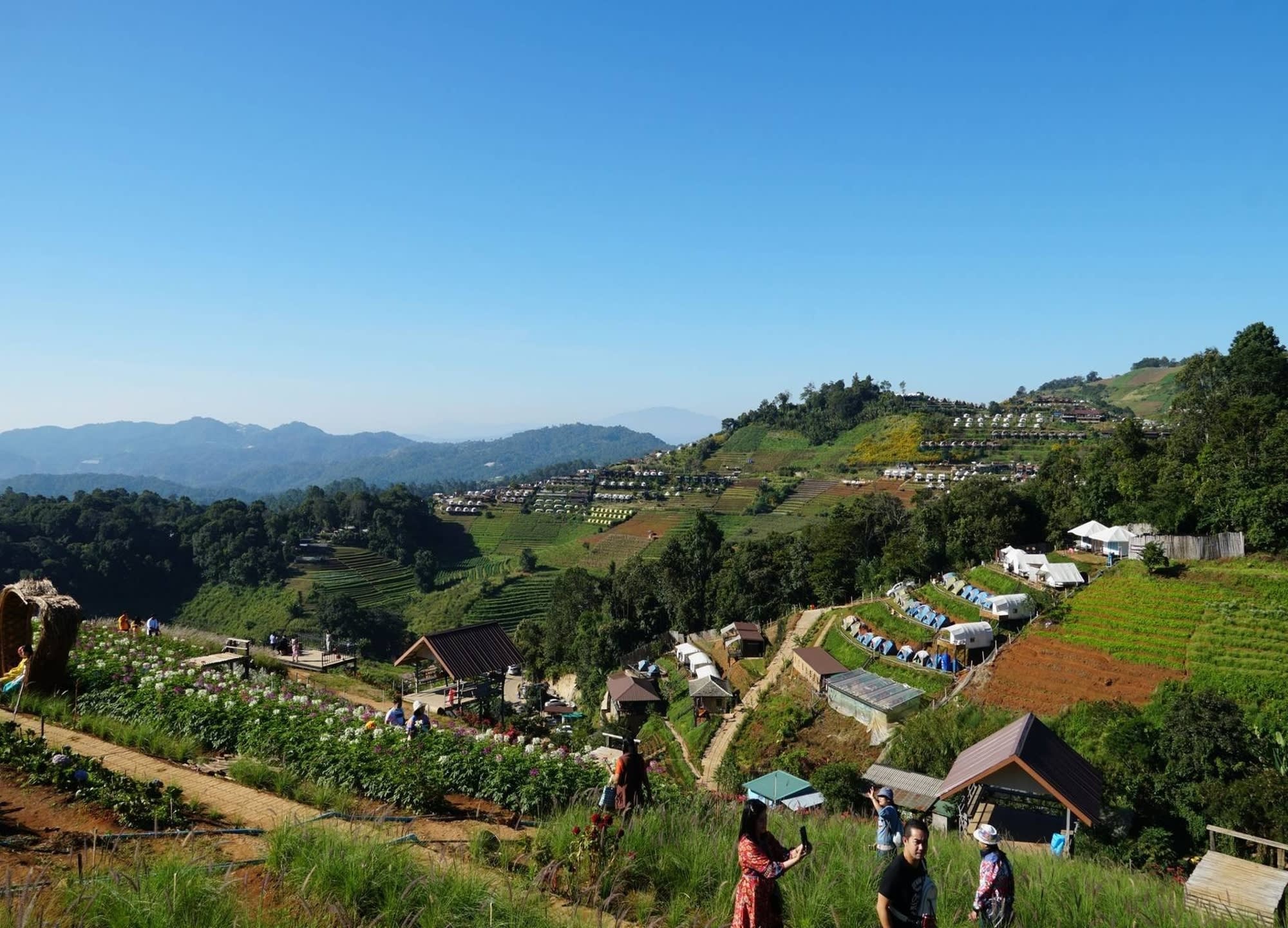 산 꼭대기에 위치한 몬쨈은 매림 밸리 (Mae Rim Valley)와 로얄 프로젝트 농장 (Royal Project Farms)의