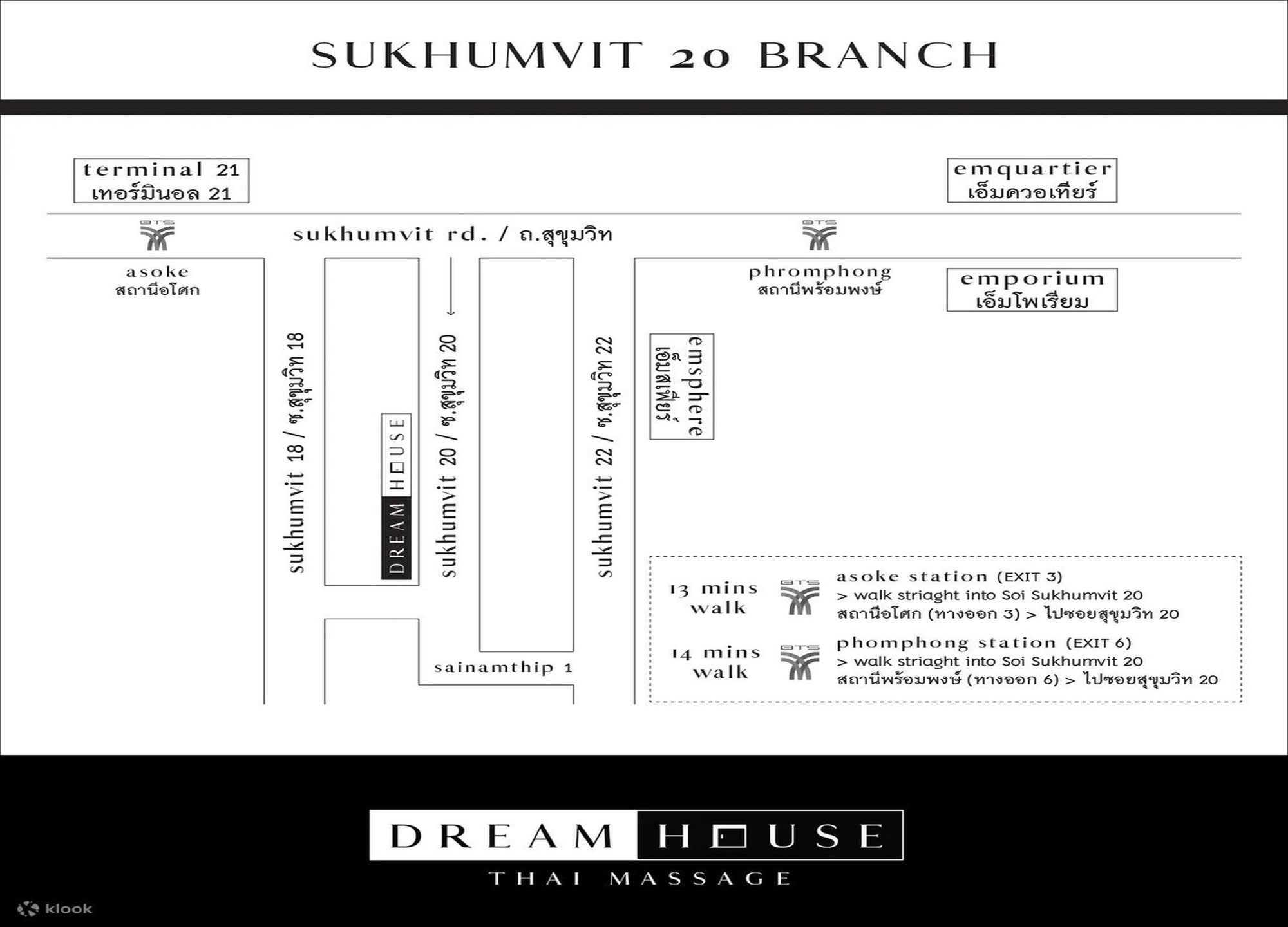 구글맵에서 'Dream House Thai Massage and Spa - Sukhumvit 20'를 검색 후 기사님에게 보여주세요.