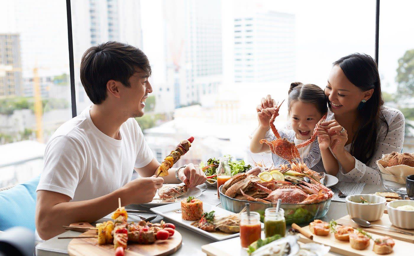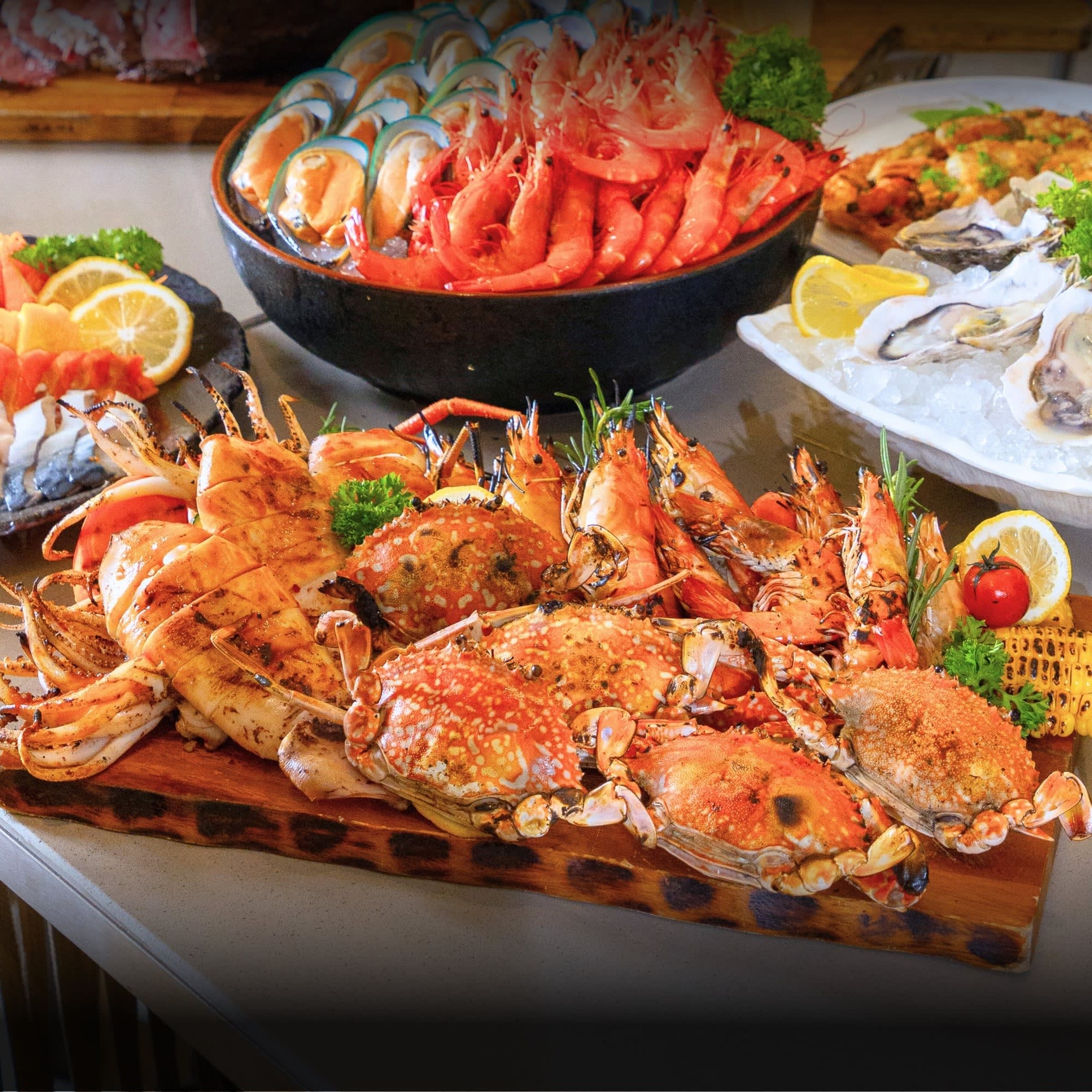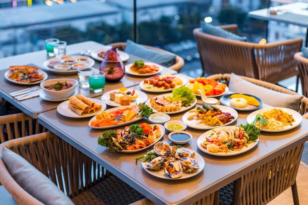 파타야를 대표하는 호텔 다이닝 & 루프탑 뷔페 레스토랑 Waves & Wind는 Grande Centre Point Pattaya 호텔의 메인 레스토랑으로, 탁 트인 바다 전망과 세련된 분위기 속에서 태국 현지 요리부터 세계 각국의 요리까지 다양하게 즐길 수 있는 공간입니다. 호텔 F층에 위치해 실내·실외 좌석 어디에서나 도시 전경, 수영장, 바다 뷰를 함께 감상할 수 있으며, Fisherman’s Wharf에서 영감을 받은 모던하고 시원한 해양 감성 인테리어가 돋보입니다. 또한 오픈 주방(Live Kitchen) 시스템을 통해 쉐프의 요리 과정을 직접 볼 수 있는 생동감 있는 다이닝 경험을 제공하며, 모든 메뉴는 자연 재료를 사용하고 MSG(화학 조미료)를 첨가하지 않아 더욱 건강하게 즐길 수 있습니다.