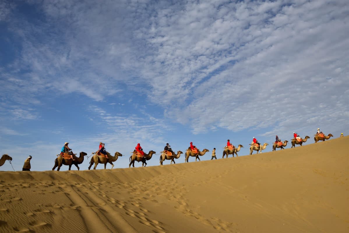 오전 9시, 둔황 시내에서 출발하여 첫 번째 목적지인 밍사산 월아천 경구로 바로 이동합니다. (이번 여정의 표준 소요 시간은 약 4시간이며, 오후 2시에 출발하는 것을 선택할 수도 있습니다.) 이곳은 사막 속의 진주와 같으며, 모래 언덕으로 둘러싸여 있고 샘물은 맑아 독특한 자연 경관을 이룹니다. 도착 후 낙타를 타고 모래 언덕을 건너며 사막의 광활함과 신비로움을 느껴보세요. 낙타 부대가 천천히 나아가고, 모래 언덕이 굽이치며, 햇빛이 금빛 모래알에 쏟아져 마치 장엄한 그림 속에 있는 듯한 느낌을 줍니다. 이어서 월아천 둑을 따라 거닐어 보세요. 이 맑은 샘은 초승달처럼 모래 언덕 사이에 고요히 자리 잡고 있으며, 주변 사막과 뚜렷한 대조를 이룹니다. 이곳에서 사진을 찍으며 자연의 놀라운 솜씨를 느껴보고, 바람이 모래 언덕을 스치는 낮은 소리를 들으며 잠시 동안의 평화와 아름다움을 만끽할 수 있습니다. 마지막으로, 밍사산의 웅장한 경치와 낙타를 탔던 특별한 경험을 되새기며 시내로 모셔다 드립니다. 이 반나절 투어를 통해 둔황 사막의 웅장함과 신비로움을 느껴보세요. 이 여정이 잊지 못할 추억이 될 것이라고 믿습니다.