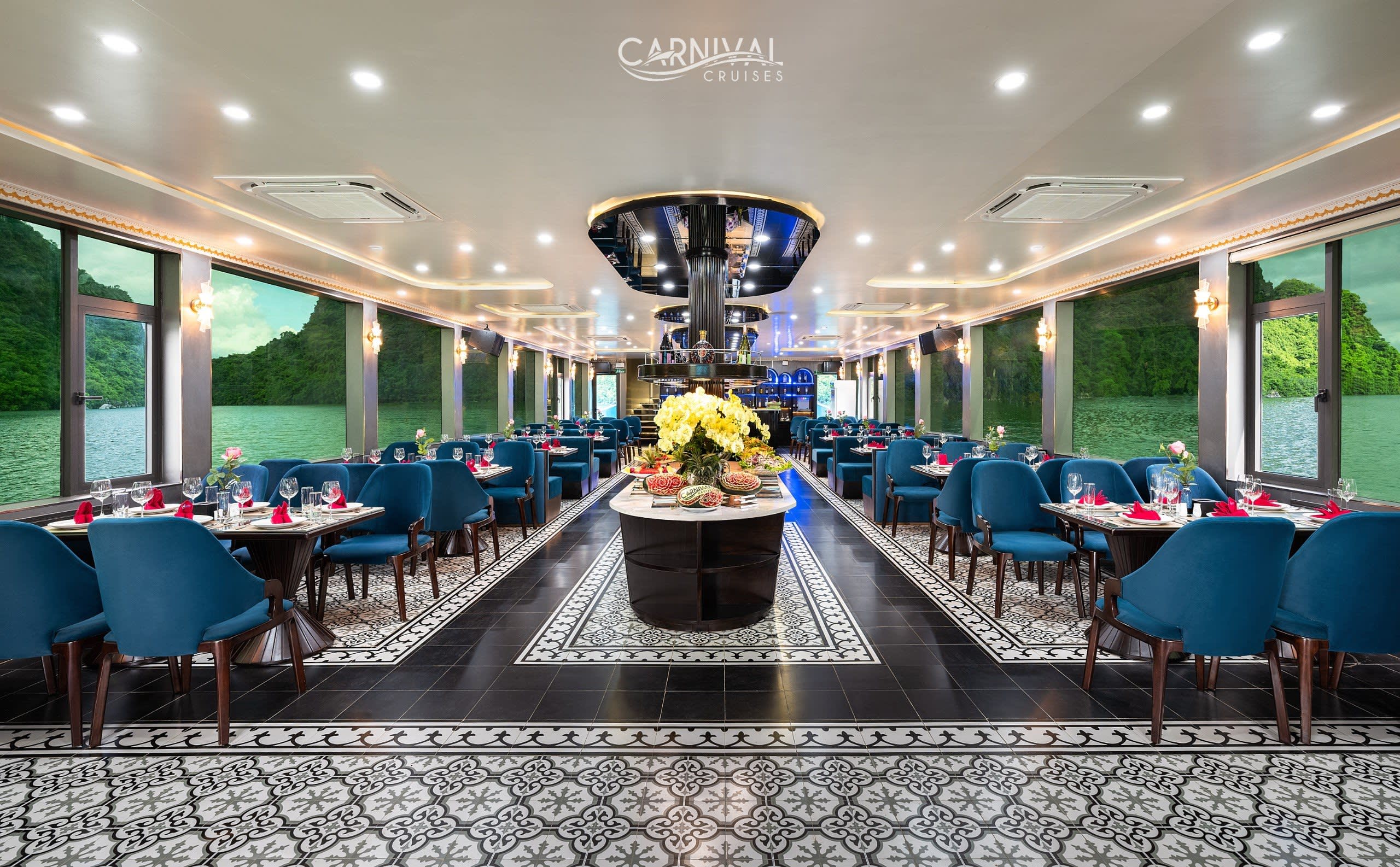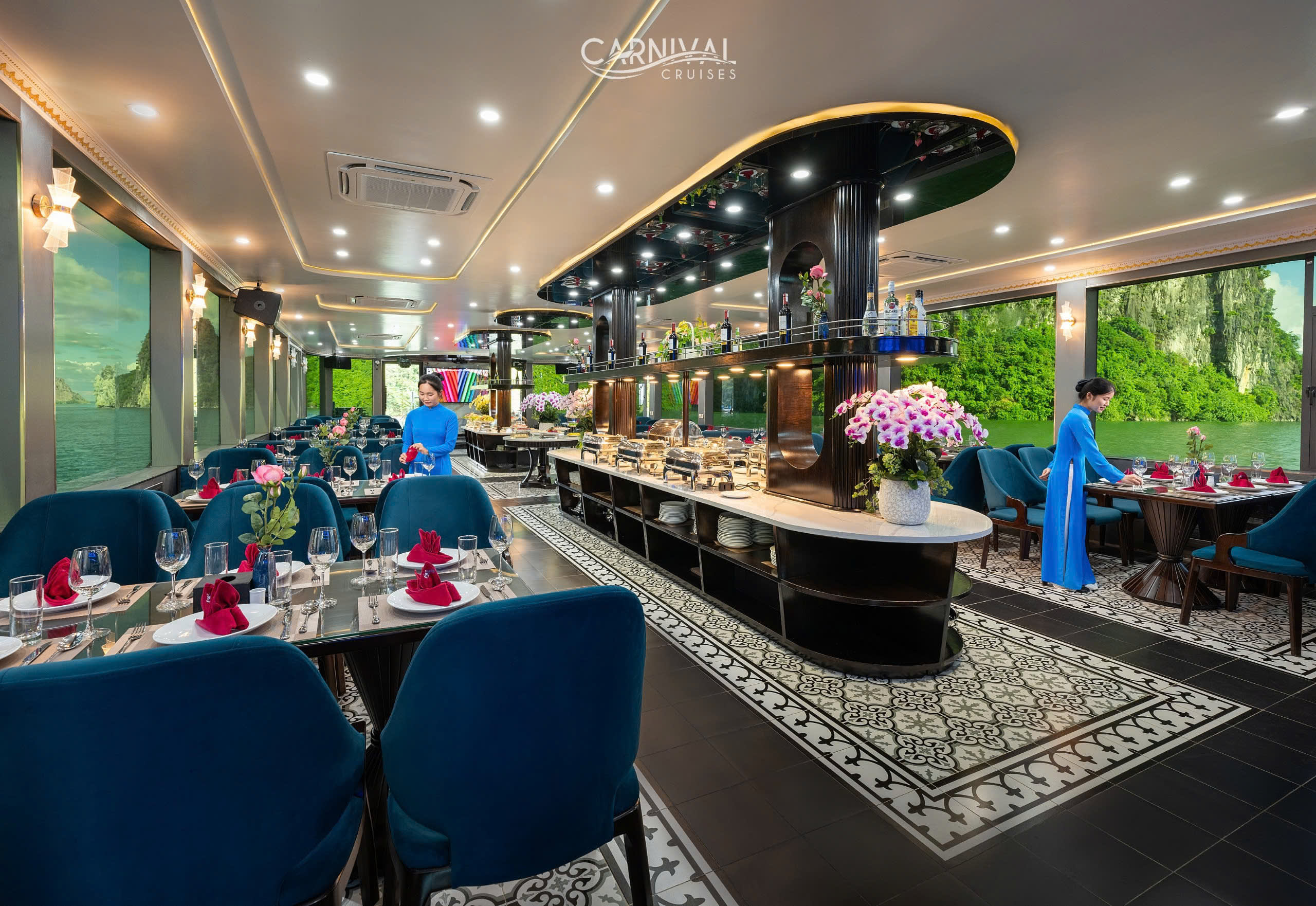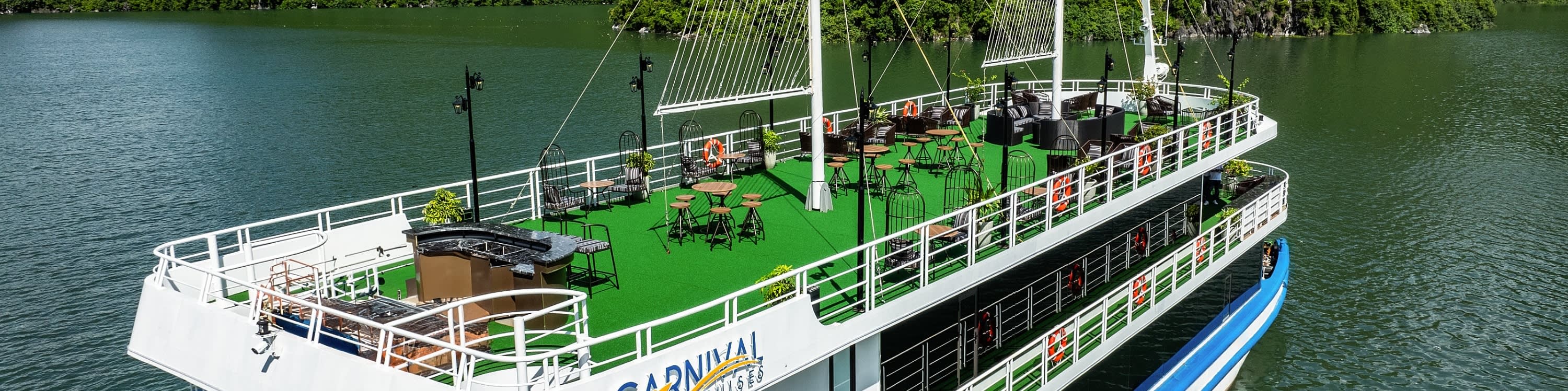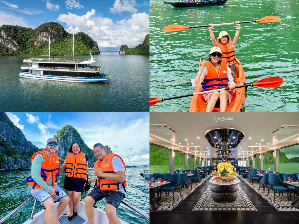 Carnival Halong Cruise는 유네스코 세계 문화유산인 하롱베이의 숨 막힐 듯한 아름다움을 경험할 수 있는 특별한 방법이며, 특히 Sung Sot 동굴 및 Ti top 섬과 같은 인기 명소를 방문할 수 있습니다. 하노이에 머무는 여행객을 위해 Carnival Halong Cruise는 하노이 구시가지 호텔에서 하롱베이의 Tuan Chau Harbour까지 편안한 리무진 버스 픽업/샌딩 서비스를 제공하여 번거로움 없는 여행을 만들어 드립니다. 놀라운 자연 명소 외에도 Carnival Cruise는 다양한 선상 액티비티를 제공합니다.