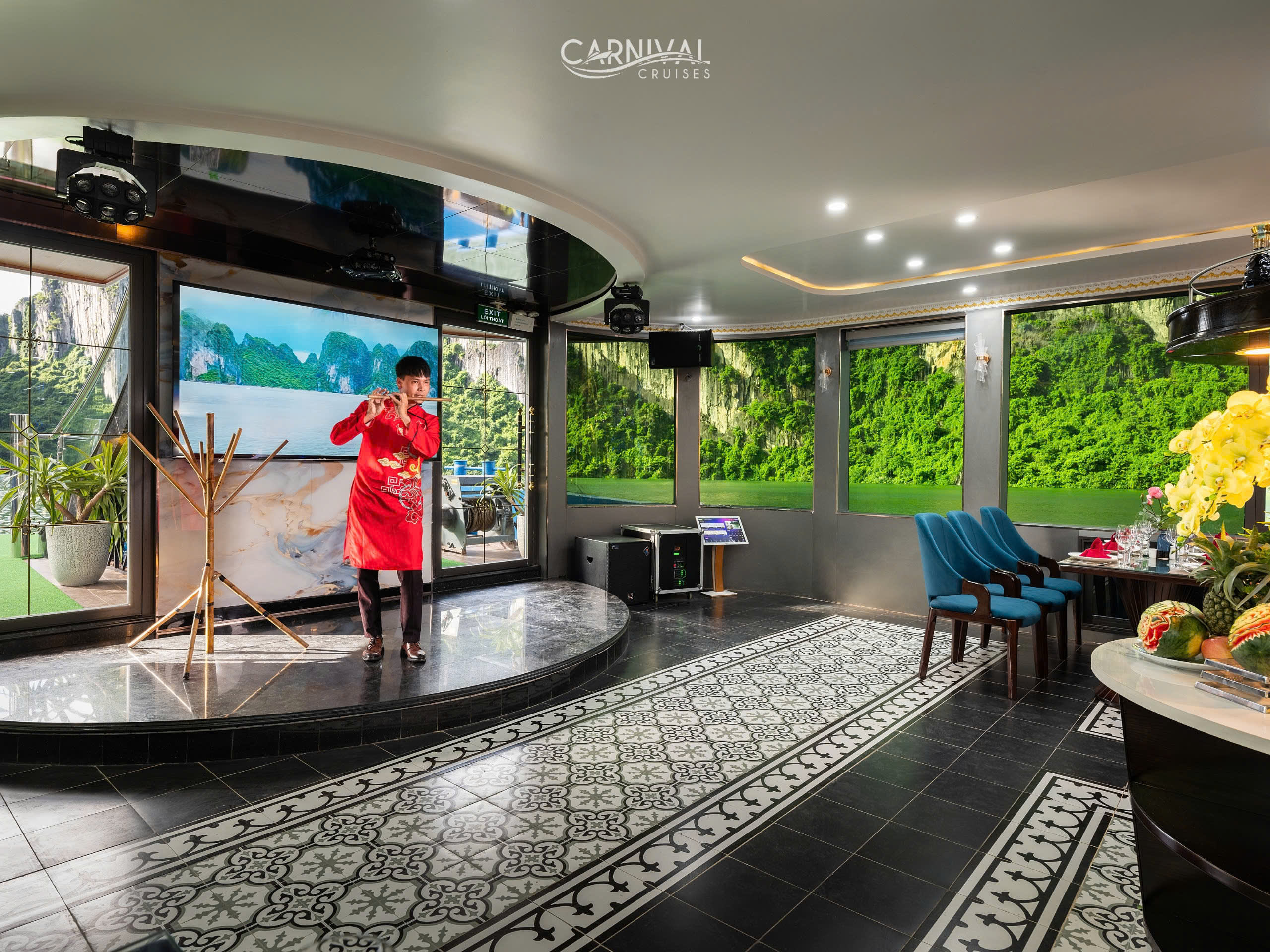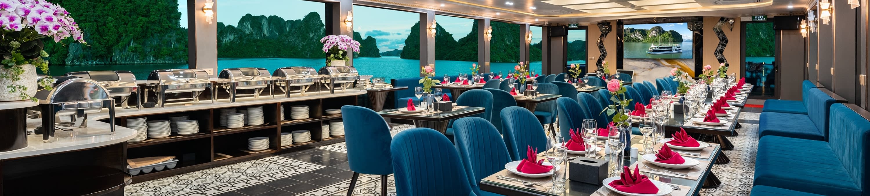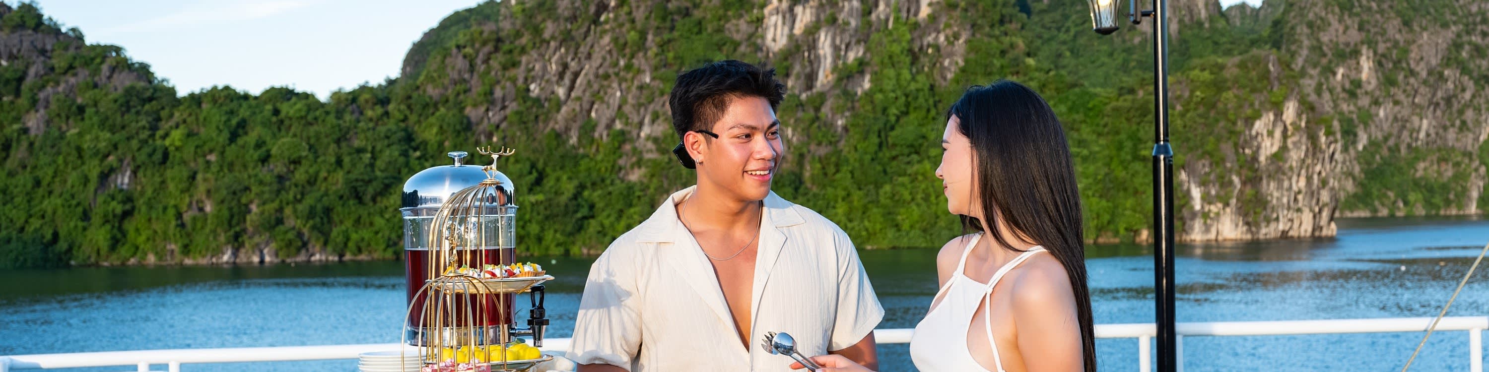 Carnival Halong Cruise는 유네스코 세계 문화유산인 하롱베이의 숨 막힐 듯한 아름다움을 경험할 수 있는 특별한 방법이며, 특히 Sung Sot 동굴 및 Ti top 섬과 같은 인기 명소를 방문할 수 있습니다. 하노이에 머무는 여행객을 위해 Carnival Halong Cruise는 하노이 구시가지 호텔에서 하롱베이의 Tuan Chau Harbour까지 편안한 리무진 버스 픽업/샌딩 서비스를 제공하여 번거로움 없는 여행을 만들어 드립니다. 놀라운 자연 명소 외에도 Carnival Cruise는 다양한 선상 액티비티를 제공합니다.
