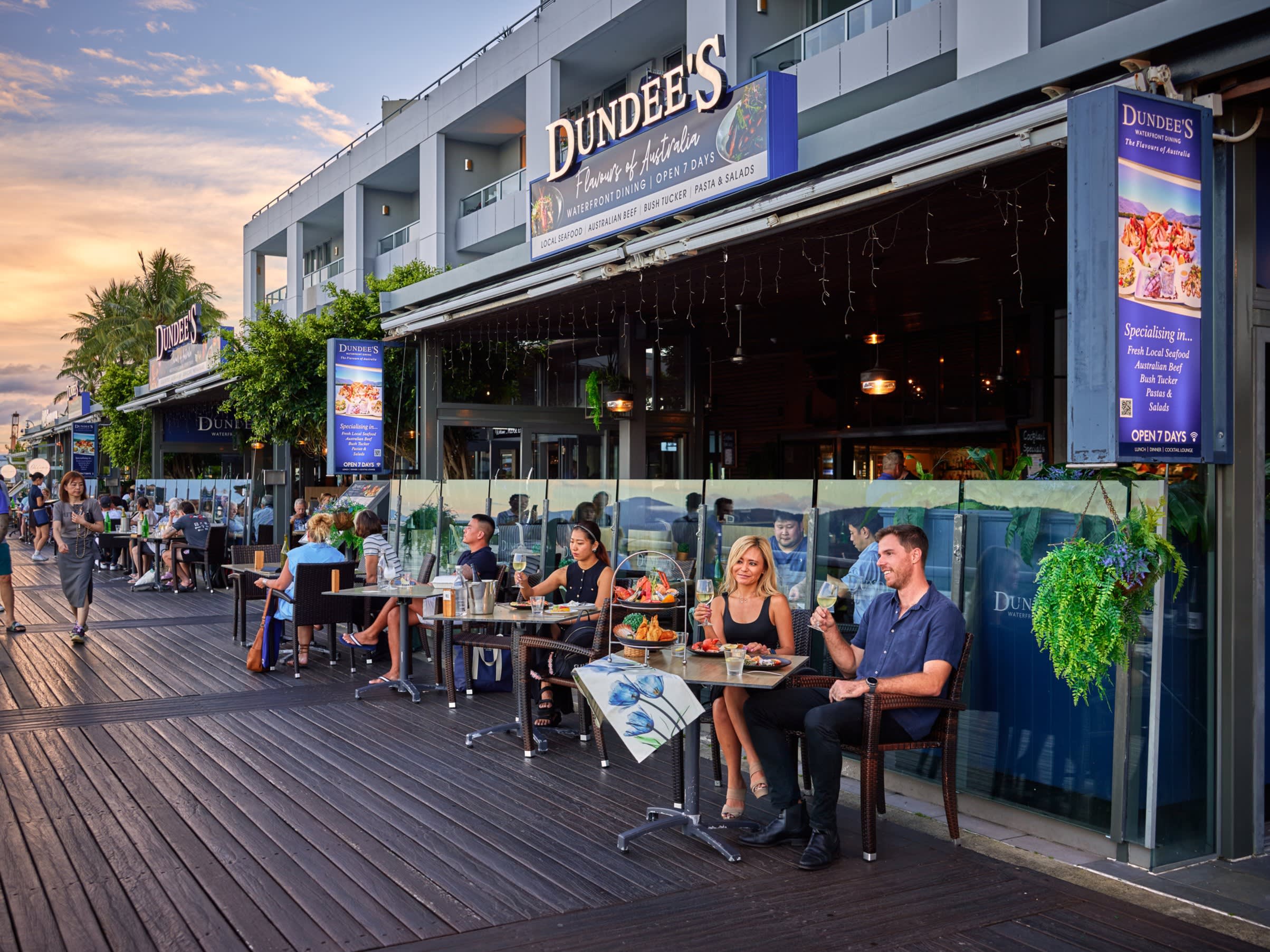 상징적인 던디스 앳 더 워터프론트에서 트로피컬 노스 퀸즐랜드의 활기찬 맛을 만끽해 보세요. 케언즈의 주요 호텔에서 도보 거리에 위치한 이곳은 편리하면서도 고급스러운 미식 경험을 선사합니다. 던디스 시그니처 익스피리언스는 이 지역의 가장 신선한 재료와 현지 별미를 강조하기 위해 전문적으로 만들어졌습니다.