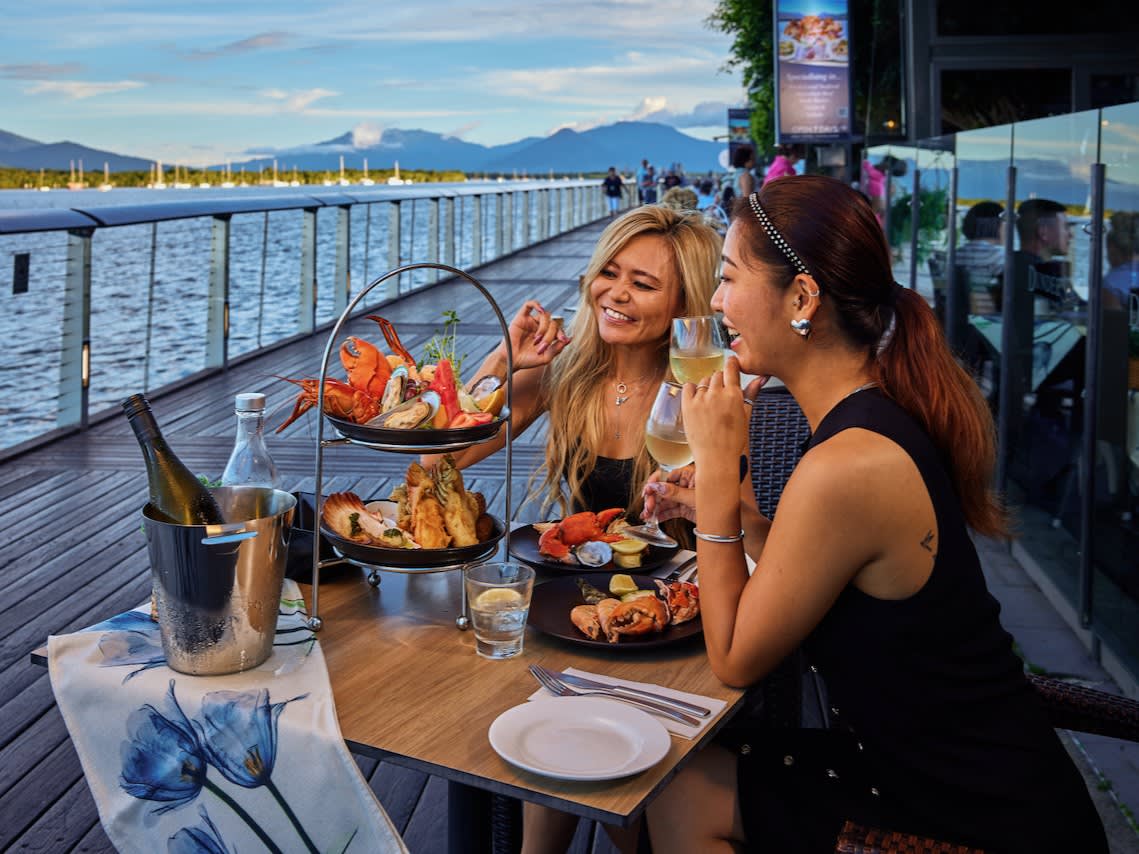 이국적인 캥거루와 악어 사테이, 그리고 화려한 해산물 요리가 특징인 진정한 호주식 만찬을 맛볼 준비를 하세요. 신선한 홍합, 가리비, 생선튀김과 함께 풍부한 맛의 타이거 새우, 머드 크랩, 모턴 베이 버그, 레드클로를 맛보세요. 비옥한 애서턴 테이블랜드에서 공수한 맛있는 디저트로 미식 여행을 마무리하며 항구에서 잊을 수 없는 식사 경험을 선사합니다.