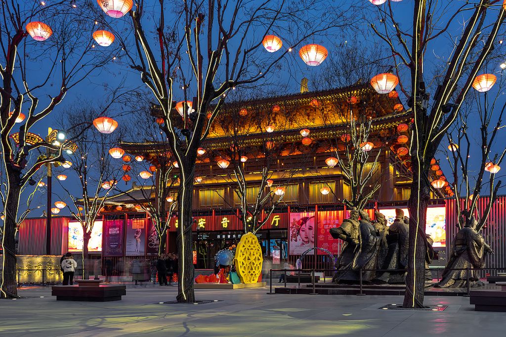 저녁 무렵에는 다탕부예청으로 산책을 갑니다. 이곳은 중국 최초로 성당 문화를 배경으로 한 대형 당나라 건축 양식의 보행자 거리입니다. 밤이 되면 휘황찬란한 조명이 켜져 마치 성당 시대로 돌아간 듯 화려한 도시 생활을 체험할 수 있습니다.