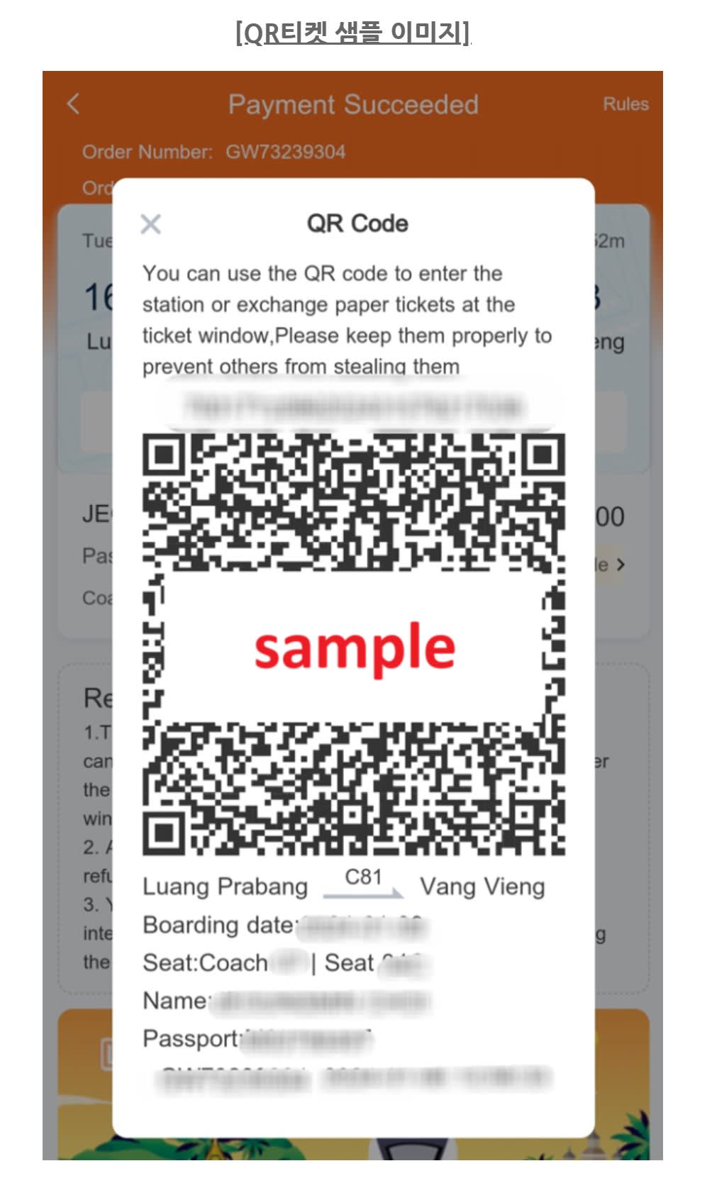 라오스 [QR/기차티켓] 방비엥→루앙프라방