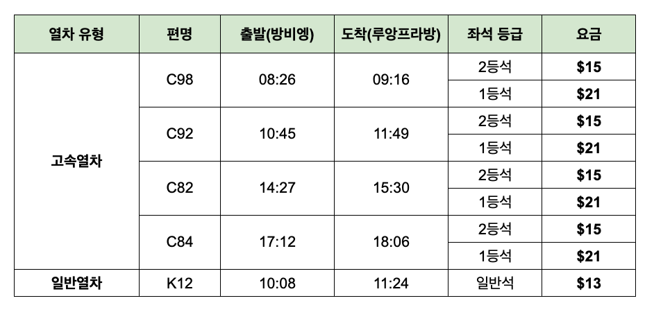 라오스 기차티켓 (방비엥→루앙프라방)