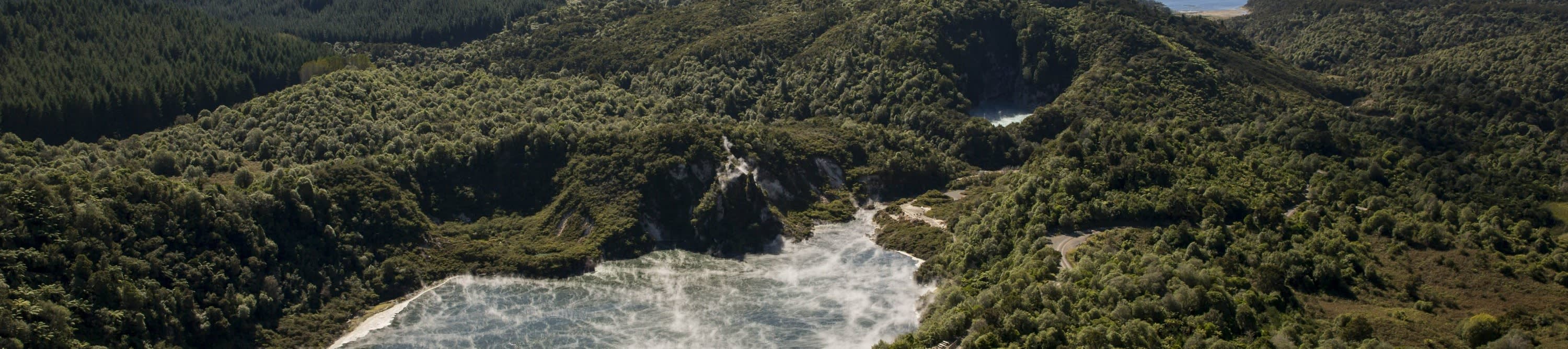 * 1시간 연장 비행:분화구 호수, 타라웨라 폭포 및 지열 보호 구역의 숨막힐 듯 아름다운 항공 뷰를 감상하세요.