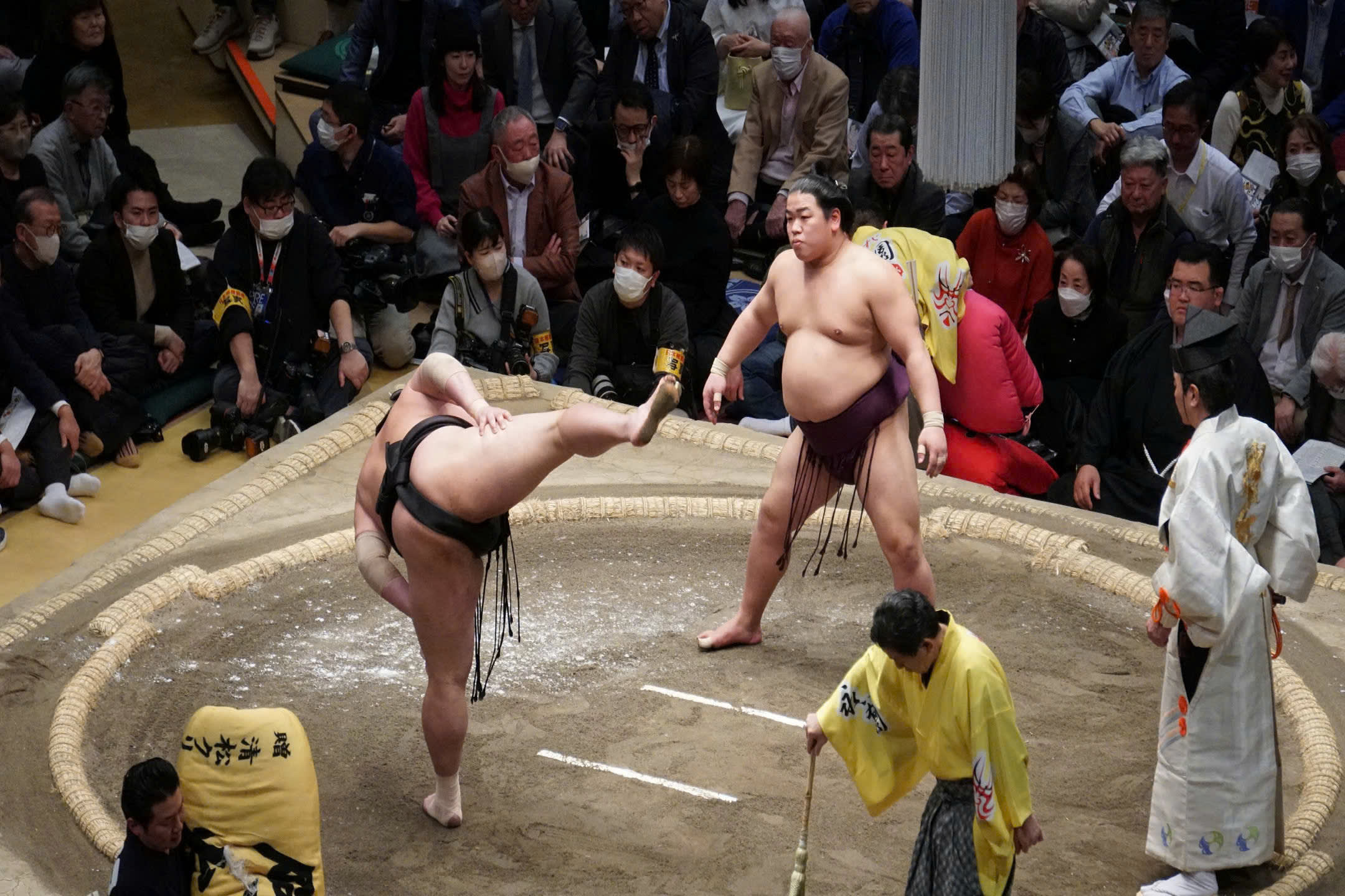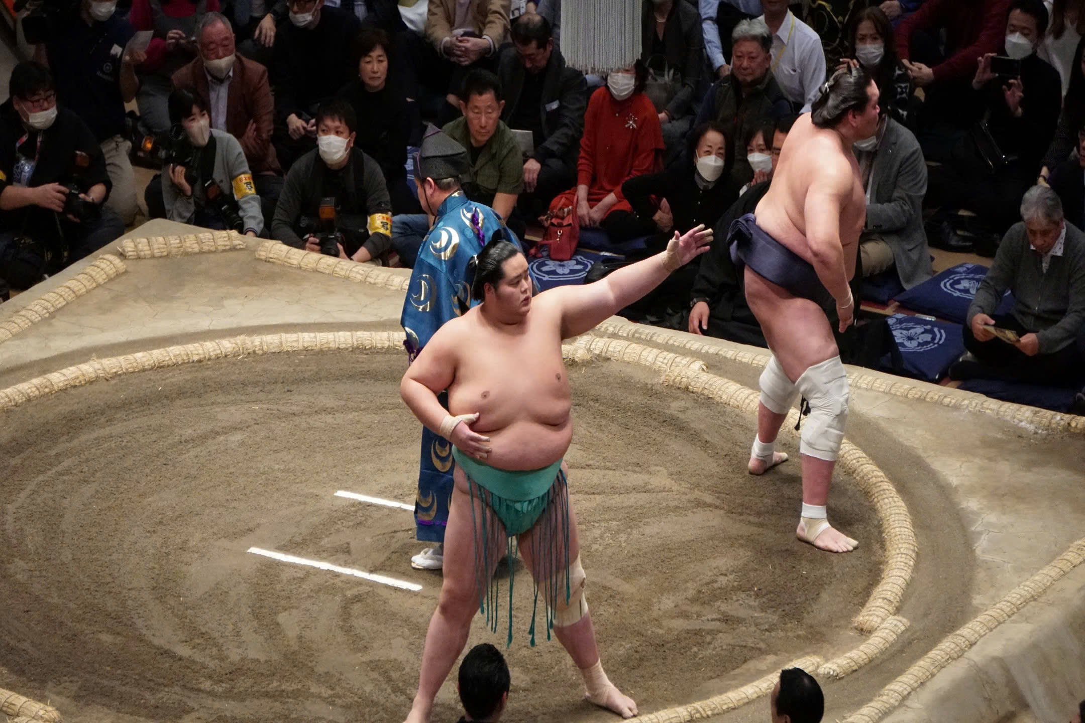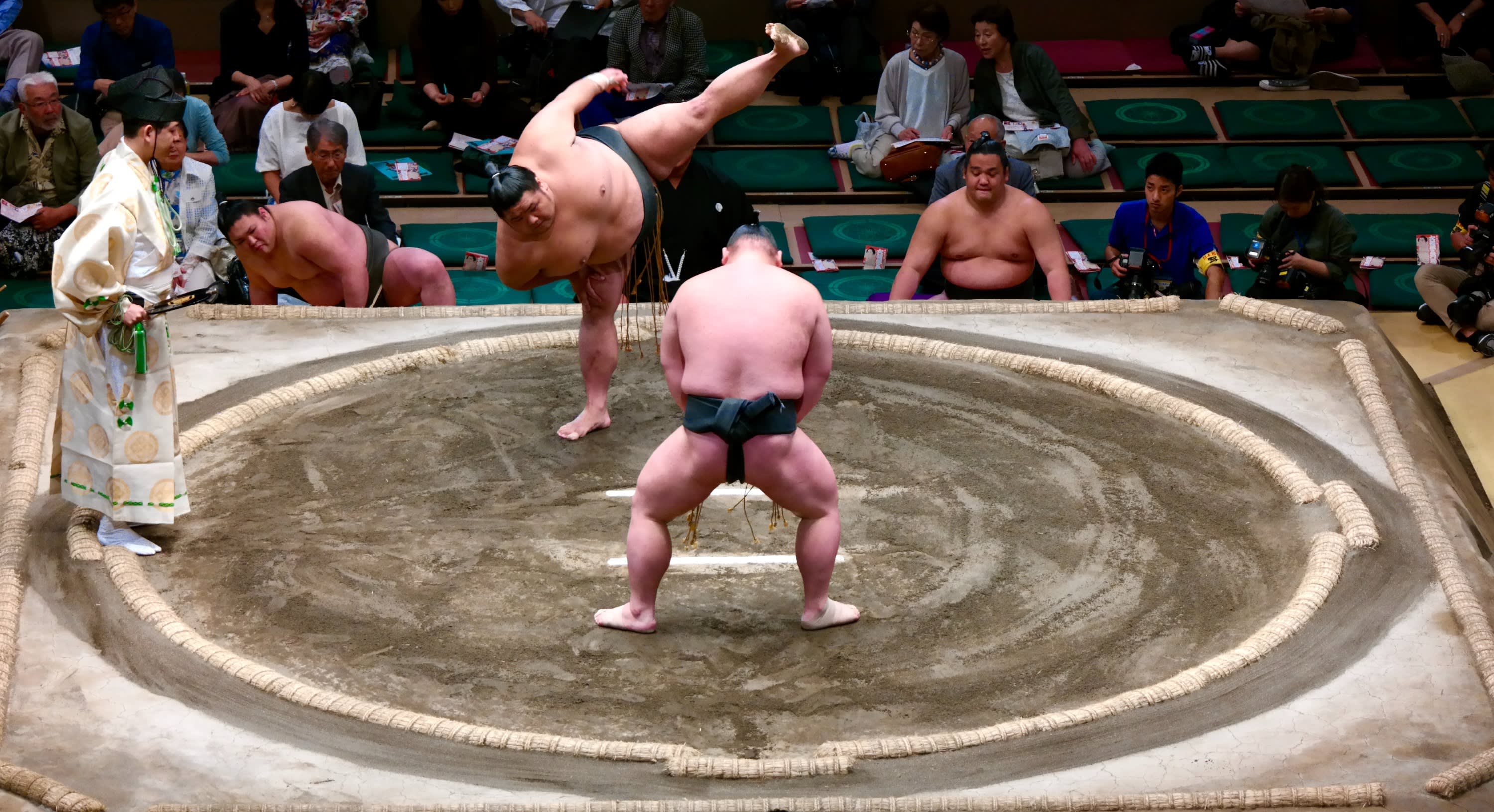 스모 토너먼트 체험은 공식 바쇼(스모 토너먼트)에서 최대 20명(최소 15명 필요)의 그룹으로 4시간 동안 진행됩니다. 이 투어에서는 스모에 보존되어 온 고대 일본 전통에 대해 배울 뿐만 아니라 소금 정화와 같은 의례적 요소도 배우게 됩니다. 또한 일본에서 가장 유명한 스모 선수들이 큰 경기를 위해 경기장에 입장할 때 응원하고 맞이할 수 있습니다. 경기장 내부에서는 B급 지정석(경우에 따라 C급)에 앉게 되며, 경기장의 의자에 앉아 경기를 훌륭하게 조망할 수 있습니다.