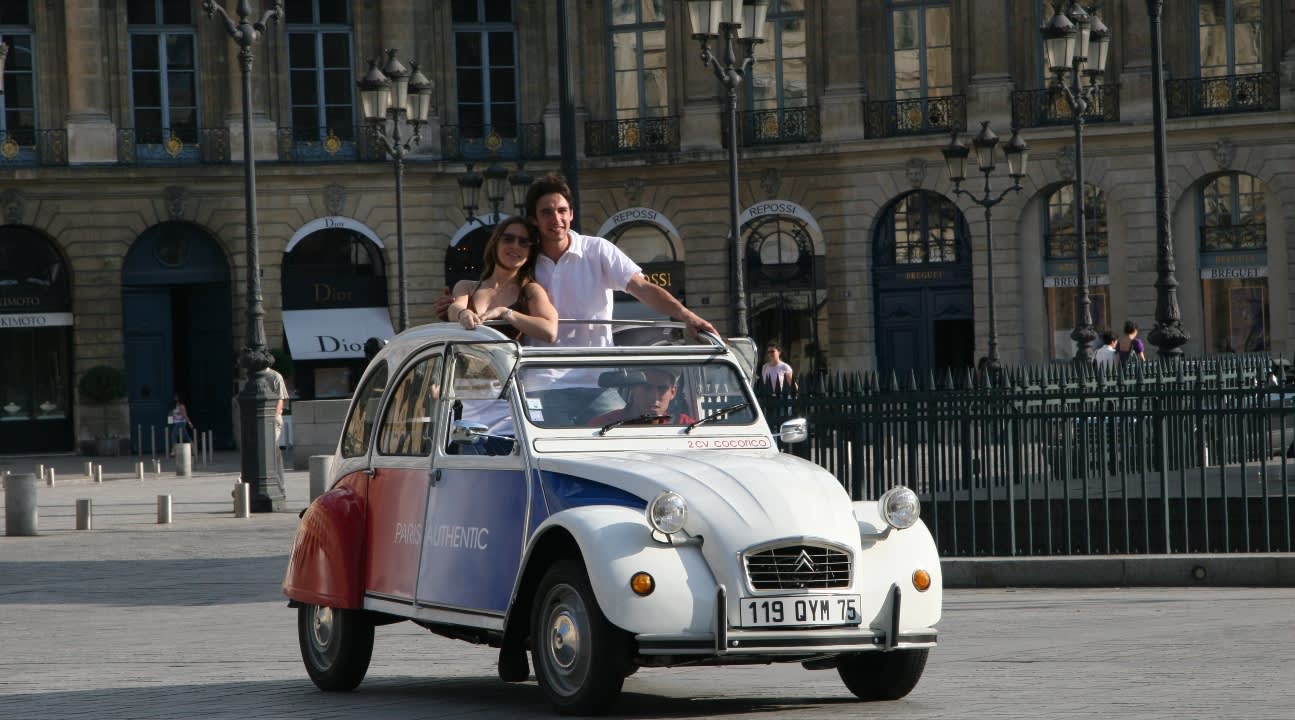 * 시트로엥 2CV라는 빈티지 프랑스 컨버터블을 타고 파리의 아름다운 거리를 누비세요.