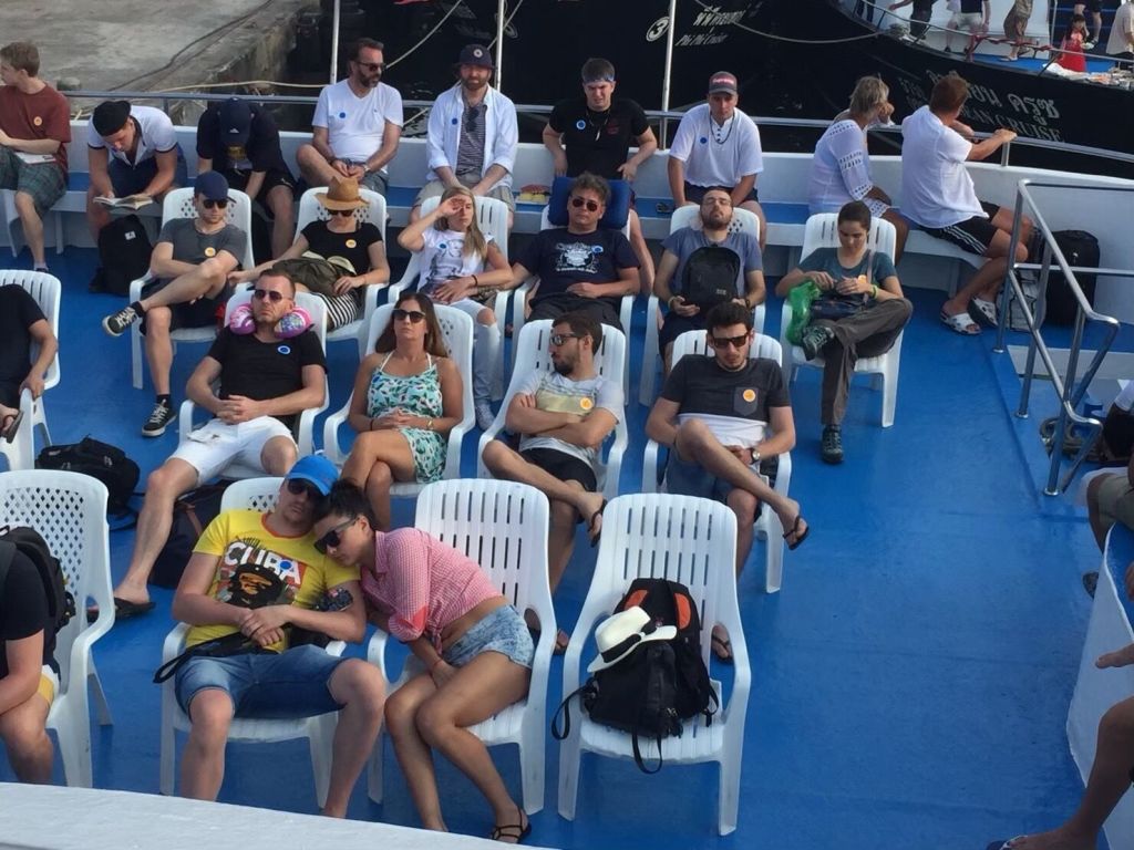 여객선에 올라 루프탑에서 따뜻한 햇살과 시원한 바람을 느끼고,