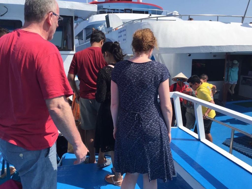 에어컨이 완비된 대형 여객선 탑승