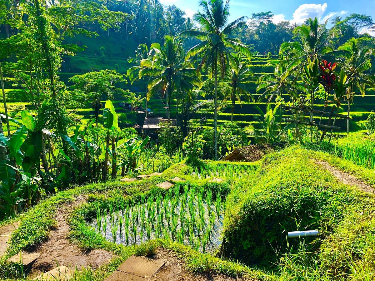 * 언덕 아래로 펼쳐지는 상징적인 계단식 논을 보며 발리(Bali)의 오랜 농업 전통을 엿볼 수 있습니다.