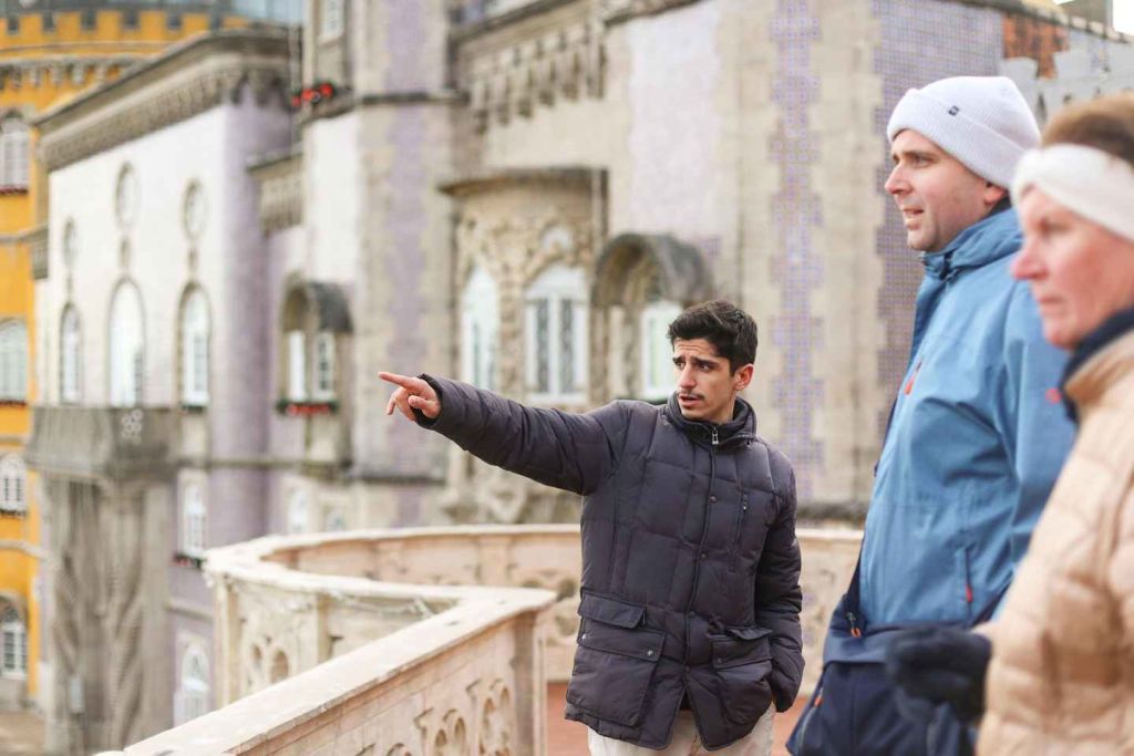 리스본에서 출발하는 저희의 정성껏 기획된 소규모 그룹 종일 투어로 리스본 주변의 매혹적인 아름다움에 흠뻑 빠져보세요. 첫 번째 방문지는 신트라에 위치한 상징적인 페나 궁전으로, 낭만주의, 르네상스, 무어 양식이 생동감 있게 조화를 이룹니다. 친절하고 지식이 풍부한 가이드가 이끄는 가이드 투어를 통해 이 웅장한 궁전에 대한 흥미로운 이야기와 통찰력을 공유해 드립니다.