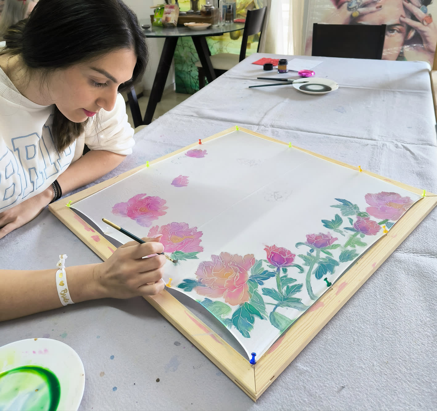저희와 함께 실크 위에서 창의력을 발휘해 보세요! 사전 페인팅 경험은 필요하지 않습니다!
