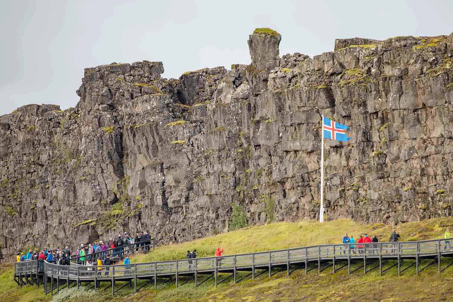 Thingvellir 국립공원은 아이슬란드에서 가장 유명한 명소 중 하나이며 아이슬란드의 역사와 지질학적으로 중요한 의미를 지닙니다. 공원 내에는 세계 최초의 의회가 탄생한 곳이 있으며, 아이슬란드 의회인 알팅이 930년에 설립되어 세계에서 가장 오래된 의회가 되었습니다.