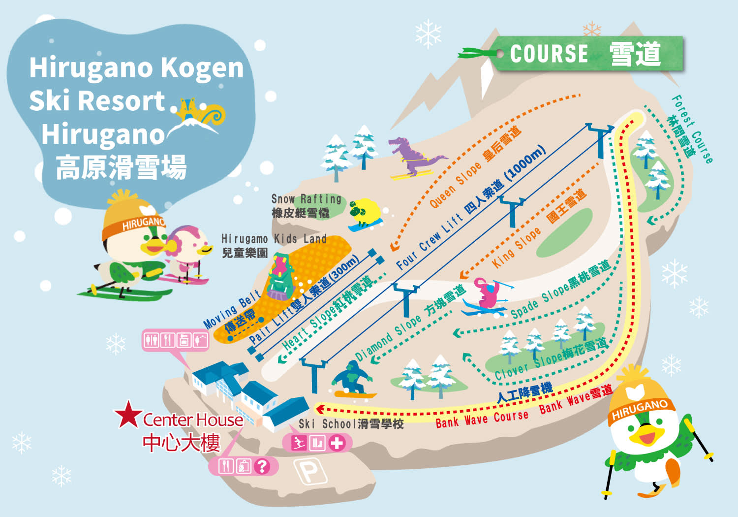 * 스키나 스노보드를 시도하고 싶은 초보자에게 적합하며, 어린이가 있는 가족은 안전하게 스키를 탈 수 있습니다.
