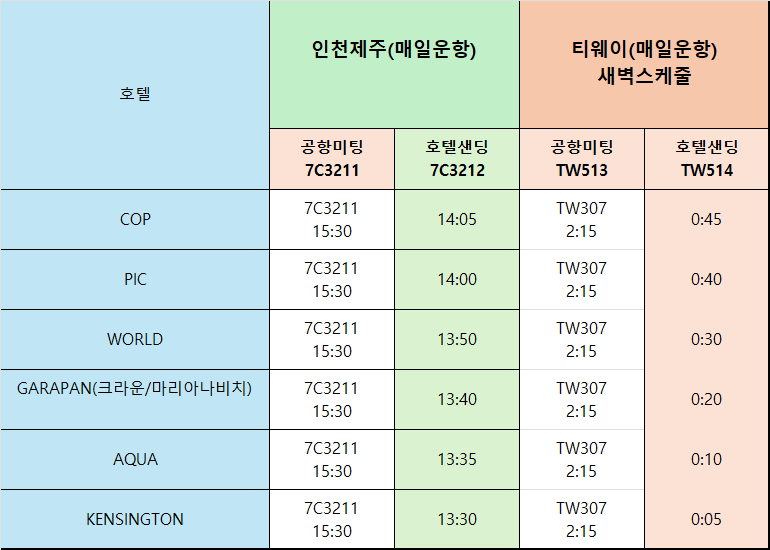 ※ 항공 스케줄에 따라 시간이 변경될 수 있으며, 변경되는 경우 별도 안내드리도록 하겠습니다.