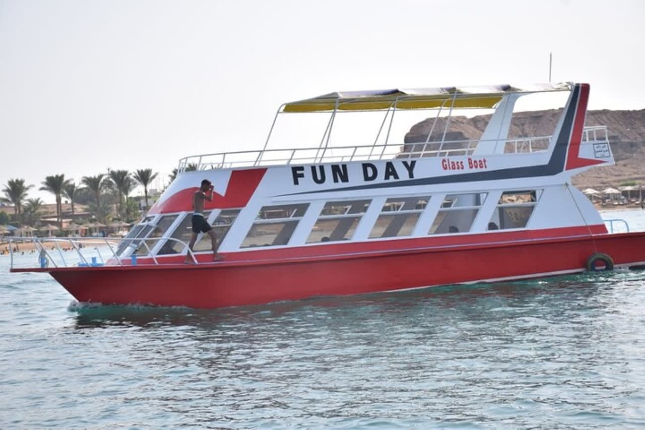 특별한 글라스 보트 투어로 젖지 않고도 샴 엘 셰이크의 아름다운 해저 세계를 탐험해 보세요! 잊지 못할 이 특별한 경험을 통해 편안하게 보트에 앉아 수정처럼 맑은 유리 패널을 통해 홍해의 다채로운 산호초와 다양한 해양 생물을 감상할 수 있습니다.