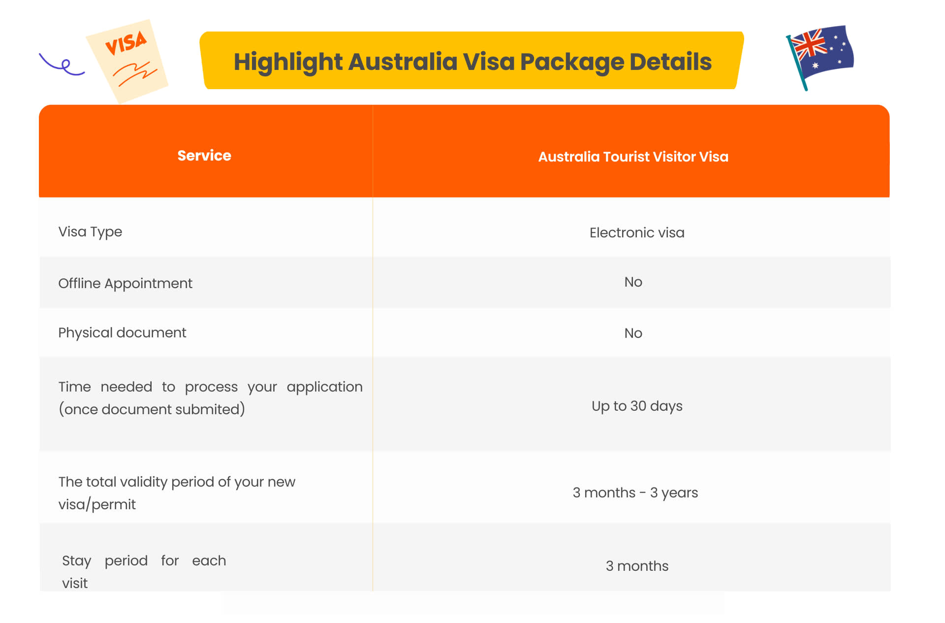 * 호주 관광 비자: 대사관 결정에 따라 3개월에서 3년까지 유효