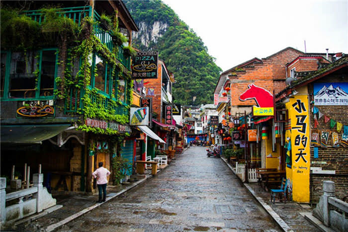 🏮양숴 서가 양숴 서가는 1400년 이상의 역사를 가진 오래된 거리로 양숴 고진 중심부에 위치하고 있으며, 현지에서 가장 오래되고 번화한 문화 랜드마크입니다. 거리는 약 800m 길이로 대리석으로 포장되어 있으며, 구불구불한 S자 모양을 하고 있습니다. 양쪽에는 보존 상태가 양호한 명청 시대 계북 민가 건축물이 있으며, 흰 회벽, 작은 청기와, 나무 문과 창문이 있어 고풍스러운 멋을 풍깁니다. 서가의 가장 독특한 매력은 동서 문화의 깊은 융합에 있으며, "외국인 거리"이자 "지구촌"이라고 불립니다. 1970년대와 80년대부터 이곳은 많은 해외 관광객을 끌어들여 점차 술집, 카페, 서양 레스토랑과 전통 공예품 가게, 식당이 공존하는 독특한 풍모를 형성했습니다.