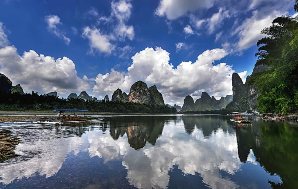 ⛴️ 이강 삼성 유람선 이강 삼성 유람선은 계림 시내 마반산 선착장에서 출발하여 양숴로 향하는 대표적인 수상 관광 노선입니다. 총 길이 약 60km, 소요 시간 4시간으로 계림 카르스트 세계 자연유산의 핵심 지역을 관통하며, 움직이는 "백리 화랑"이라고 불립니다. 유람선은 보통 2층 객실로 설계되어 있으며, 쾌적하고 우아한 환경을 갖추고 있으며, 관광 데크가 있어 360도 사각지대 없이 양안의 풍경을 감상할 수 있습니다. 이 노선은 이강의 산수 정수를 감상할 수 있는 최고의 방법입니다. 유람선은 강을 따라 내려가면서 구마화산, 황포도영(20위안 지폐 배경), 흥평 고진 등 유명한 관광 명소를 감상할 수 있으며, 산세와 물빛이 마치 서서히 펼쳐지는 중국 수묵화 같습니다.