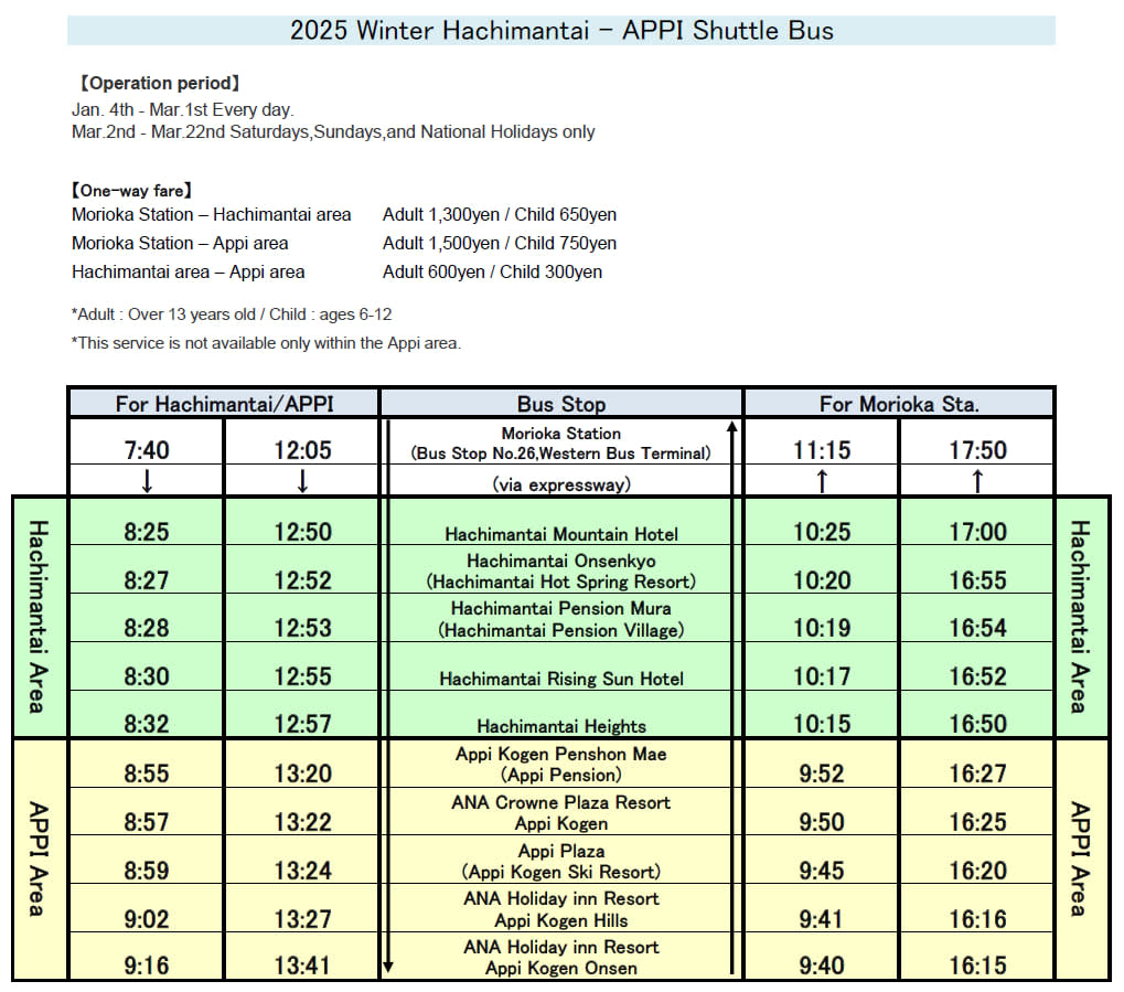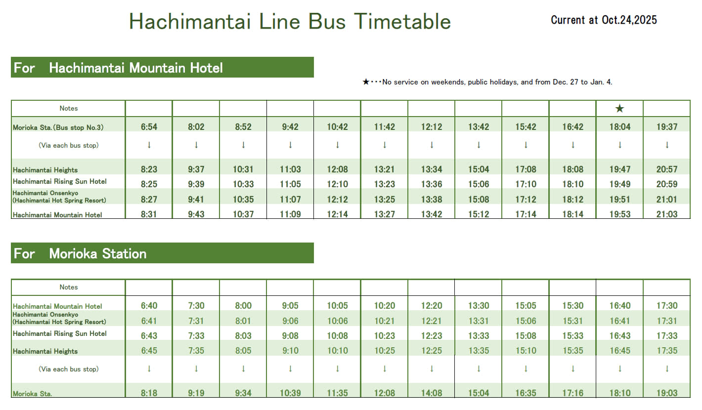 * 편리한 연결:모리오카~하치만타이 마운틴 호텔선