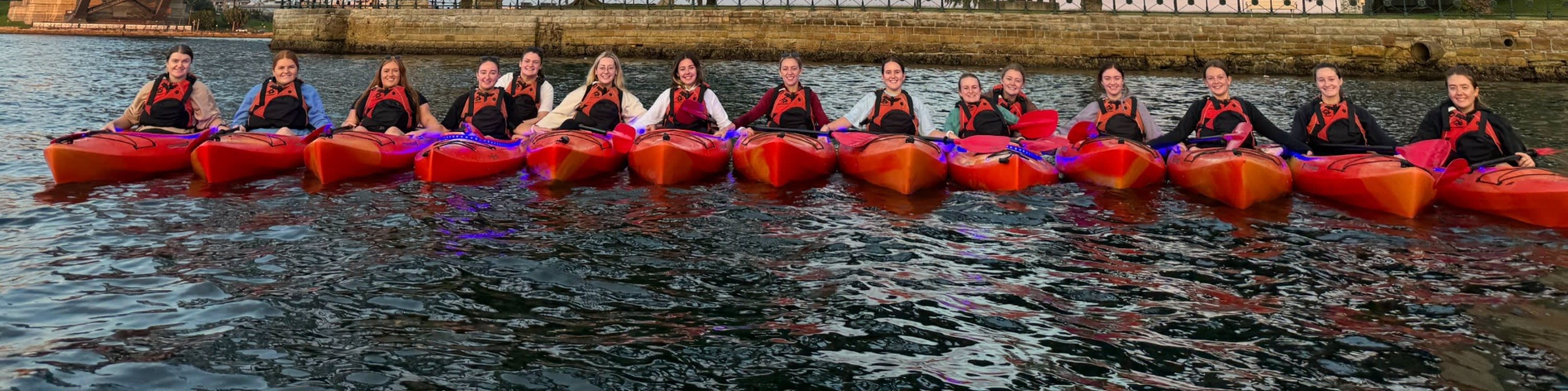 자격을 갖춘 가이드와 함께 시드니 하버에서 즐겁고 안전한 카약 세션을 경험하세요.