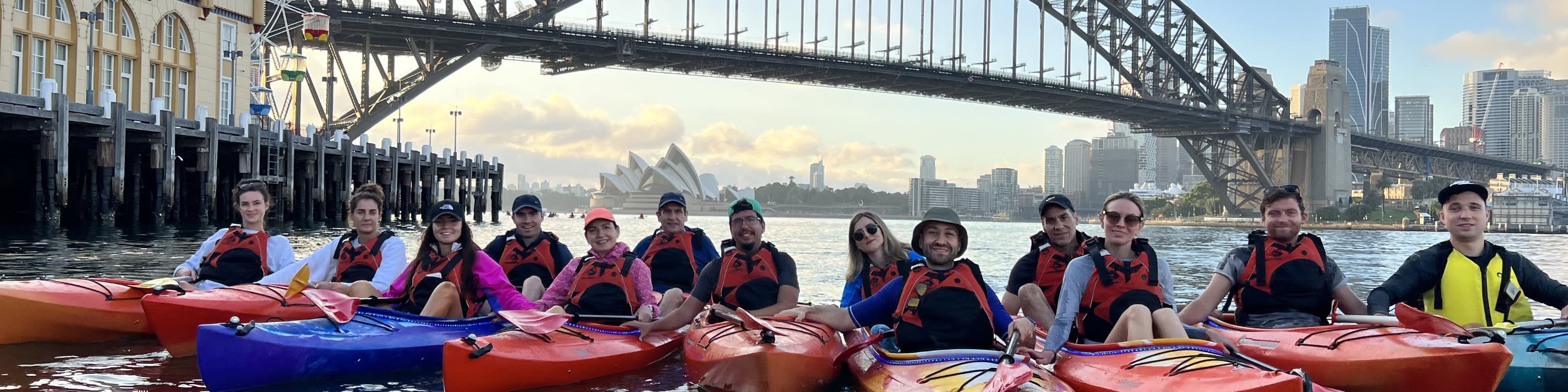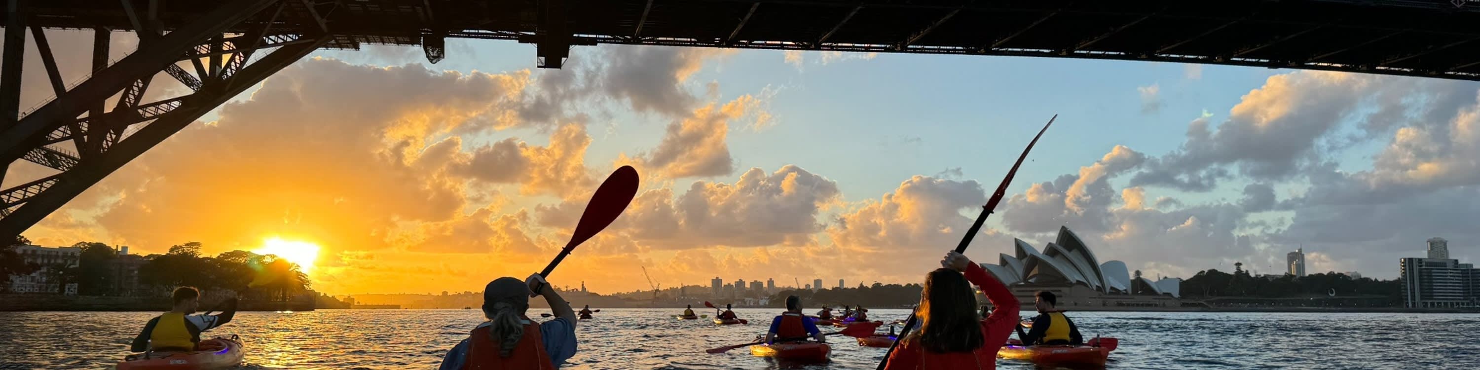 아름다운 시드니 하버에서 카약을 타며 아침을 시작하고, 하버 브리지 위로 떠오르는 태양을 감상하세요.