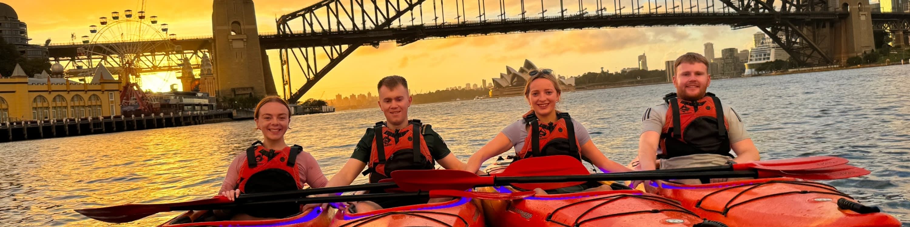 * 시드니 하버에서 카약을 타고 아름다운 아침을 맞이하며 하버 브리지 위로 떠오르는 태양을 감상하세요.