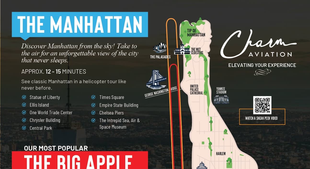 짜릿한 하늘 여행을 통해 맨해튼 위를 날아오르며 특별한 시각으로 도시의 가장 상징적인 랜드마크를 감상하세요. 잊지 못할 경험을 선사하는 이 투어는 허드슨강 위를 지나며 자유의 여신상, 엘리스섬, 원 월드 트레이드 센터의 숨 막힐 듯 아름다운 경치를 선사합니다. 엠파이어 스테이트 빌딩의 웅장한 모습에 감탄하고 첼시 부두를 스쳐 지나가며, 인터피드 해양항공우주박물관도 만나보세요. 각 랜드마크는 뉴욕의 풍부한 역사와 활기찬 문화에 대한 이야기를 담고 있습니다. 뉴욕을 처음 방문하는 여행자든 현지인이든, 잠들지 않는 도시 위를 나는 이 특별한 경험은 평생 잊지 못할 추억을 선사할 것입니다.