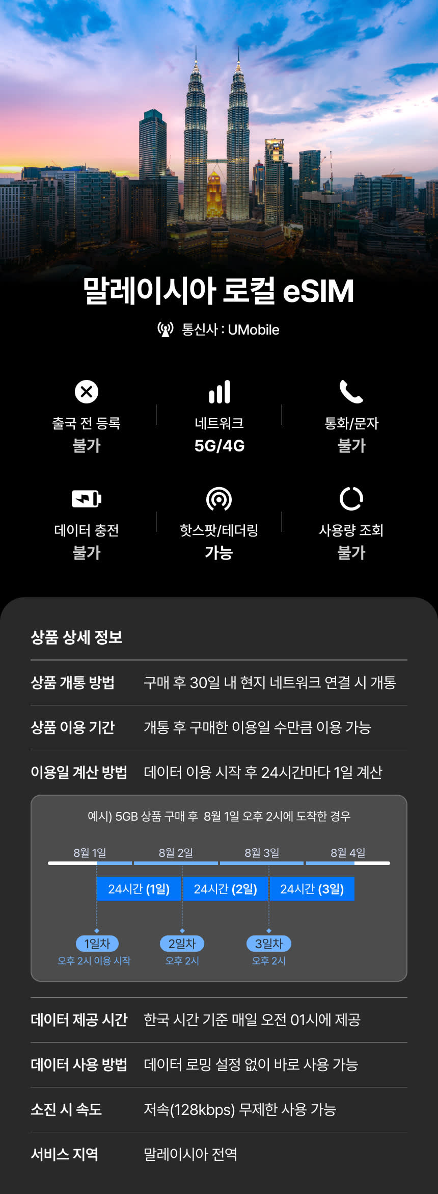 말레이시아 이심 eSIM 제공량 모두 소진 이후에도 무제한 데이터!