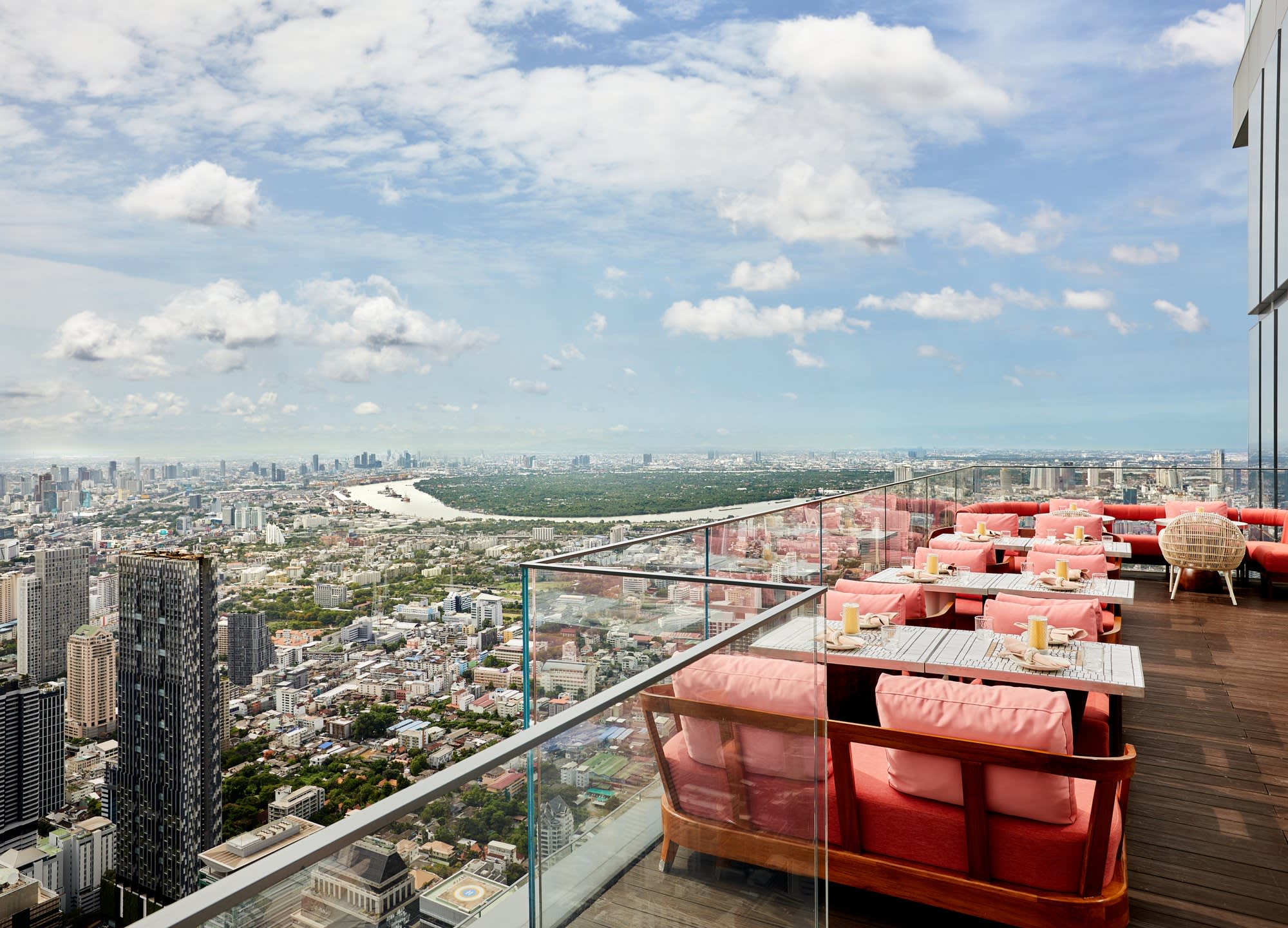 ▶ 주의사항 - 안내사항 해당 서비스는 호텔 측 사정으로 가격 및 서비스 내용이 예고 없이 변경될 수 있어요. 성탄절, 송크란, 신년, 태국 휴일, 발렌타이 데이 등 특별요금이 부과가 돼요. 당일 오전에 예약 하시는 경우 예약 가능여부는 11:00 이후에 확인 가능합니다. 11:30 이용 예약 시 급하게 견적서가 나가거나 12:30 으로 변경된 견적서가 나갈 수 있습니다. 더불어 결제 시한이 매우 짧으며 간혹 예약 마감된 날짜인 경우 이용 시간이 거의 다 되서 불가 안내가 나갈 수 있습니다. 일정이 확실하신 경우 빠른 예약 진행하여 이용이 좋으신 점 안내 드립니다. 런치 세트를 예약하여 이용한 분들에 한해 식사 후 추가비용 없이 마하나콘 스카이 워크 전망대 입장 가능합니다. 전망대 입장 원하실 경우 레스토랑 직원에게 개별 요청하여 이용해주세요. (날씨가 허락되고 사설 이벤트가 없는 경우에 한함) - 👗 드레스 코드 복장은 스마트 캐주얼로 슬리퍼, 반바지, 운동복, 민소매 등의 복장은 피해주셔야 해요. - 🍽️ 메뉴 관련 안내 옵션별 메뉴는 '자세히 보기'를 확인해주세요. 일부 메뉴는 알레르기 유발 성분이 포함될 수 있으니, 식이 제한이 있을 경우 주문 시 직원에게 알려 주세요. ▶ 아동 정책 아동 동반 시 현장에서 메뉴 추가로 결제해주세요.