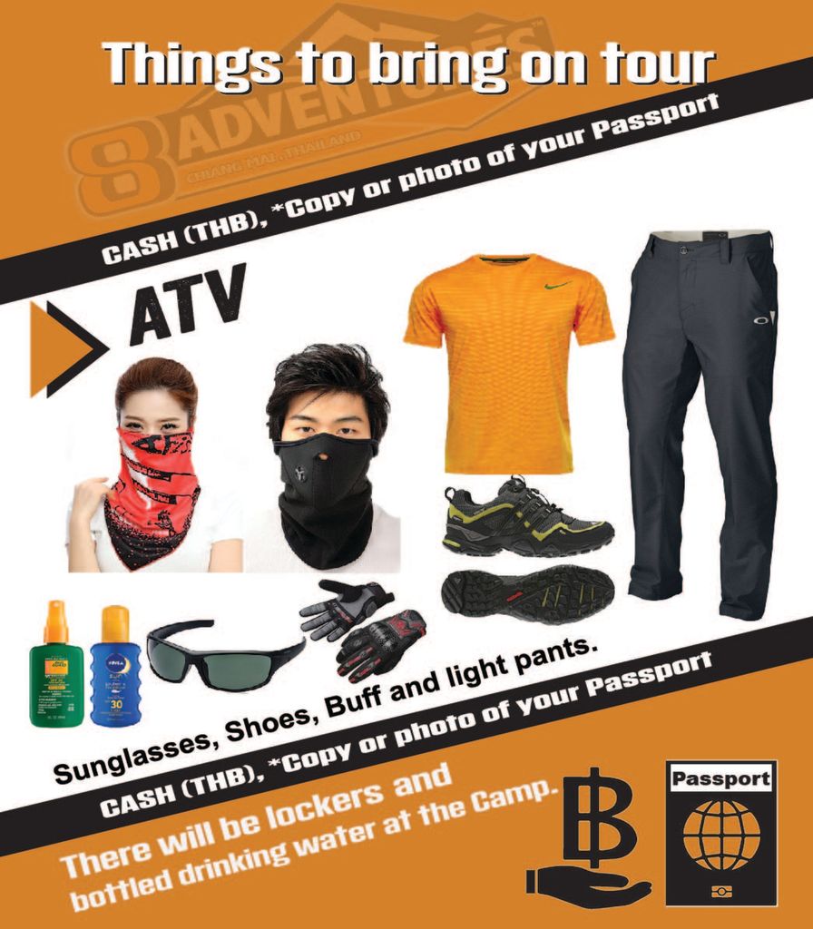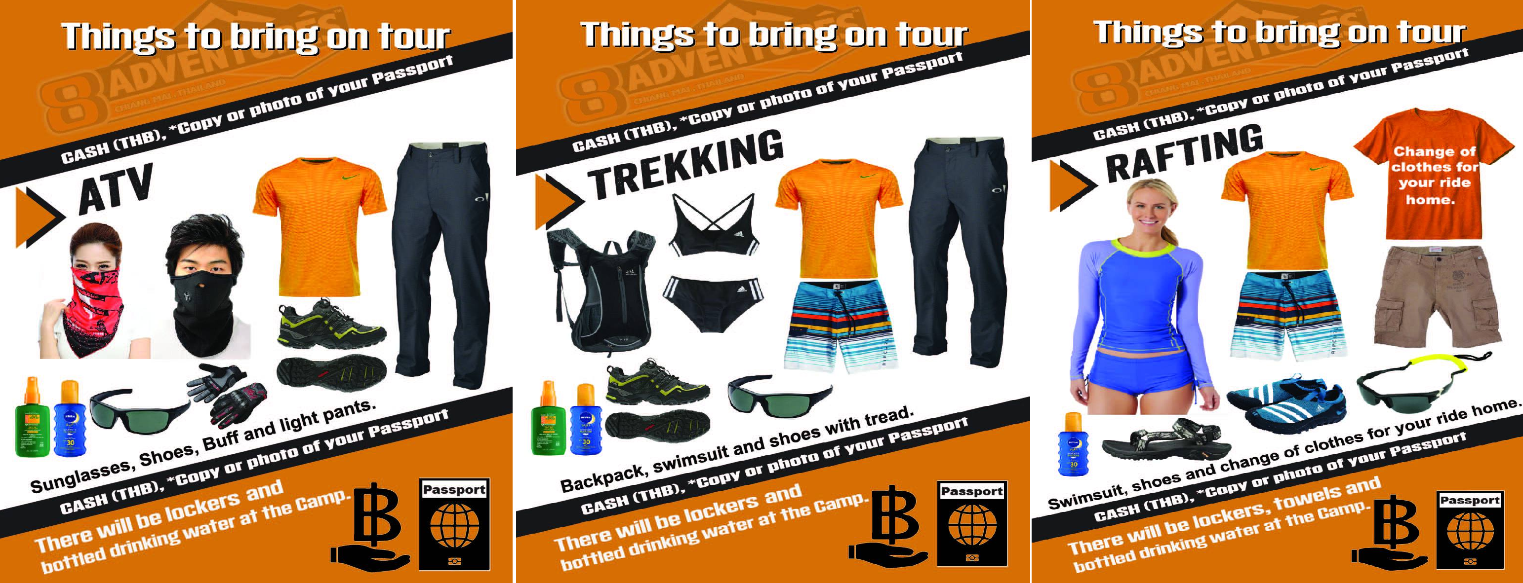 ▶ 주의사항 - 🚐 픽업 안내 호텔 픽업이 포함되어 있습니다. 앞 팀 상황에 따라 15~20분 정도 지연될 수 있어요. 정확한 시간과 비용은 바우처를 꼭 확인해주세요! - ⚠️ 픽업 주의사항 원활한 픽업을 위해 정해진 시간에 꼭 호텔 로비에서 기다려주세요! 로비가 여러 곳인 경우 호텔의 메인 로비에서 기다려주시기 바랍니다. 빌라, 풀빌라, 콘도 (빌라 단지) 메인 입구 및 경비실에서 미팅하시면 됩니다. 미팅 시간에 늦으실 경우 미리 연락을 주셔도 다른 조인된 손님들 때문에 대기할 수 없습니다. 늦으시면 노쇼(No-Show) 처리가 되어 변경, 취소 및 환불이 불가하니 늦지 않게 꼭 미리 도착해주세요. - 📝 외곽 지역 픽업 요청 시, 시내 호텔은 무료 픽업이 가능하나 외곽 지역의 호텔은 추가 픽업비가 발생하거나 가능하지 않을 수도 있습니다. 요청사항 란에 묵으시는 숙소의 이름과 주소를 정확히 기재하여 주시면 픽업불가 또는 픽업추가요금가격을 투어업체에 확인 후 알려드립니다. - ❗ 주의 사항 본인의 부주의로 인한 부상은 책임지지 않습니다. - 🔸 그 외 안내사항 당일 진행 사정에 따라 시간 및 일정이 변동될 수 있습니다. 직원의 안내 또는 지시를 따르지 않을 경우 바로 탑승 또는 투어가 중단되며 이 경우 환불은 불가합니다. 가지고 오신 귀중품은 호텔에 보관하시는 게 좋습니다. 귀중품 및 현금 등의 분실 사고와 개인의 안전사고에 대하여 각별히 유의해 주시고 이유 불문, 귀중품 분실 시 당사는 책임을 지지 않음을 미리 알려드립니다. 몸이 불편하거나 피곤하거나 코스를 완료할 수 없는 경우 직원에게 먼저 말씀해주시기 바랍니다. - ☔ 날씨 관련 안내 비가 조금 와도 투어는 진행됩니다. 고객님께서 스스로 기상 조건 판단하에 투어를 참여하지 않으실 경우 전액 환불 불가합니다. - 📝 참고사항 타월이 준비되어 있으며 숙소로 돌아가기 전에 사용할 수 있는 샤워 시설이 있습니다. - 🎒 준비물 안내 각 옵션에 따른 투어 준비물 안내는 하단 이미지를 참고하여 주시기 바랍니다. (단일 패키지) 옵션 자세히보기를 클릭하면 각 이미지를 크게 확인하실 수 있습니다. ▶ 준비물 썬크림, 여벌 옷, 모자, 선글라스, 방수팩, 약간의 비상금, 여권(국립공원 입장시 필요하며, 사본 및 사진 가능) 🚣 래프팅 &🚶🏽트래킹을 이용하시는 분들은 꼭 ! 꼭 ! 수영복 (겉옷 안에 미리 입고 오시는 게 좋습니다.) 과 갈아입을 옷들을 가져 오시는게 좋아요!! 🏍️ ATV를 같이 이용하시는 분들은 참여에 차질이 생기지 않도록 이에 적절한 운동화를 신고 와주세요. ▶ 아동 정책 만 6세 이하는 해당 프로그램을 이용할 수 없습니다. 7세~14세 아동 이용이 가능합니다. 아동 및 청소년은 항상 부모의 보살핌을 받을 수 있도록 주의하시길 바랍니다.