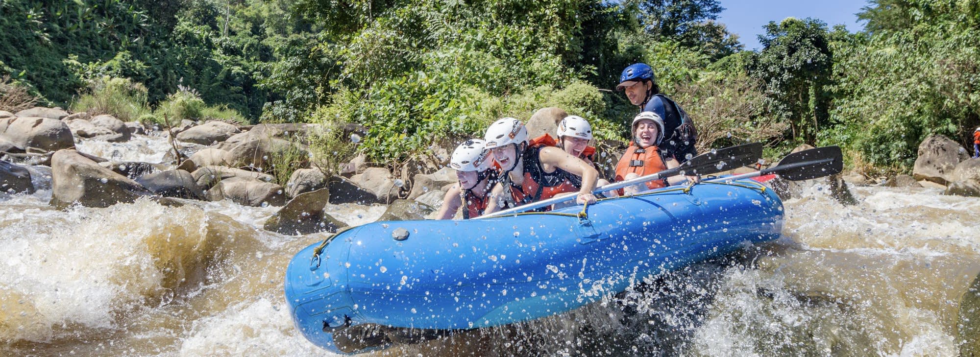 가이드의 안내로 기본 기술을 배우며 완만한 급류를 지나, 정글 속 수로와 코끼리 캠프를 따라 여유롭게 즐기는 코스예요.