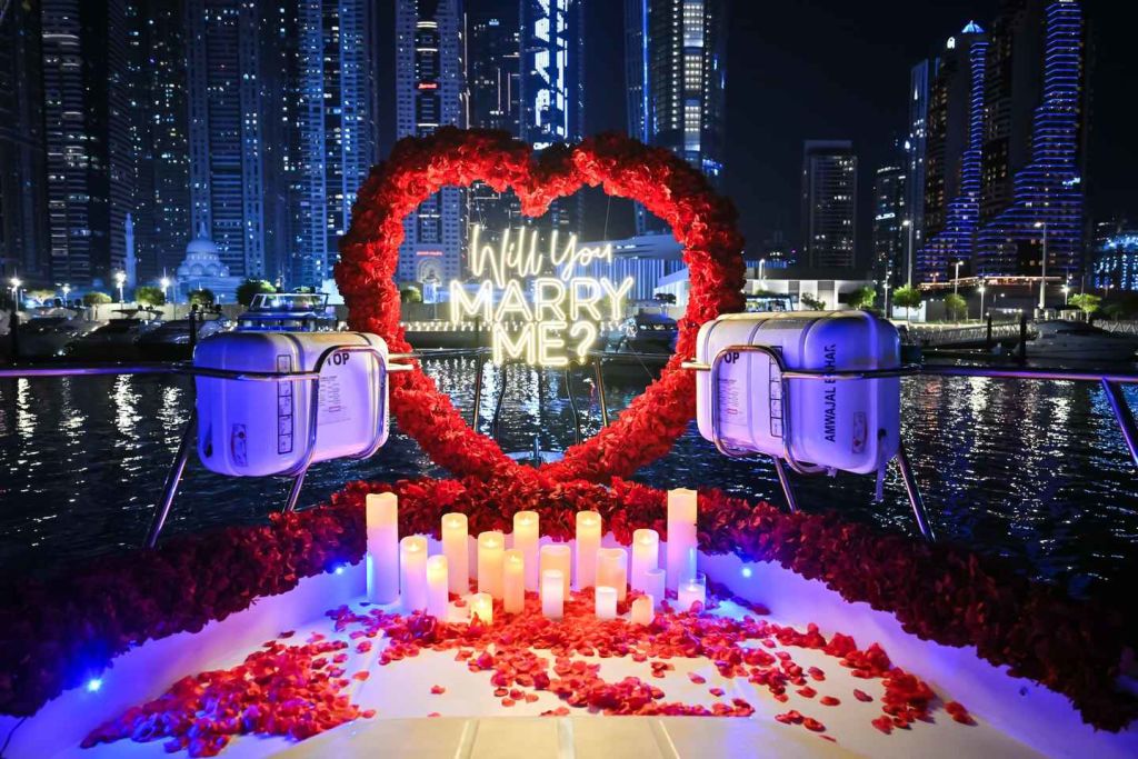 • 두바이의 럭셔리 요트에서 잊지 못할 프로포즈를 해보세요. 상징적인 전망과 로맨틱한 분위기, 별빛 아래에서 즐기는 프라이빗 디너를 즐기며 완벽한 승낙을 받아보세요.