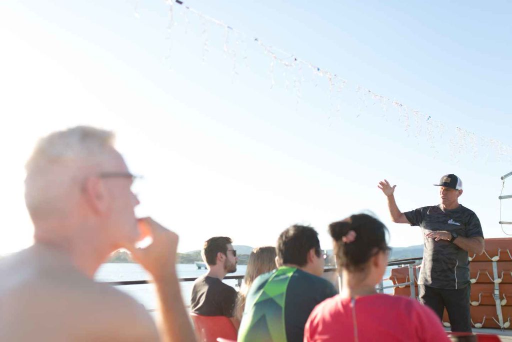 발 아래에서 헤엄치는 야생 돌고래를 만나고 계절에 따라 바닷새, 펭귄, 물개, 고래, 개복치, 학교어, 상어, 범고래, 심지어 거북이도 만날 수 있습니다. 편안함과 보다 개인적인 경험을 위해 승객 수는 제한되어 있습니다. 크고 넓은 맞춤형 보트는 가족 여행객들에게도 이상적입니다.