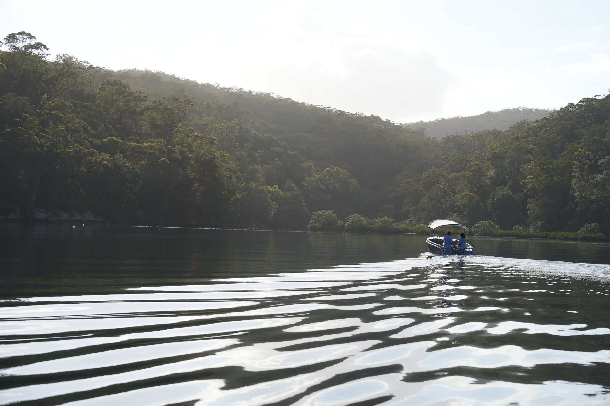 아름다운 쿠링가이 체이스 국립공원(Ku-ring-gai Chase National Park)의 아쿠나 베이(Akuna Bay)에서 출발하여 잔잔한 물 위에서 원하는 속도로 유람하고 휴식을 취하며 멋진 풍경을 감상해 보세요.