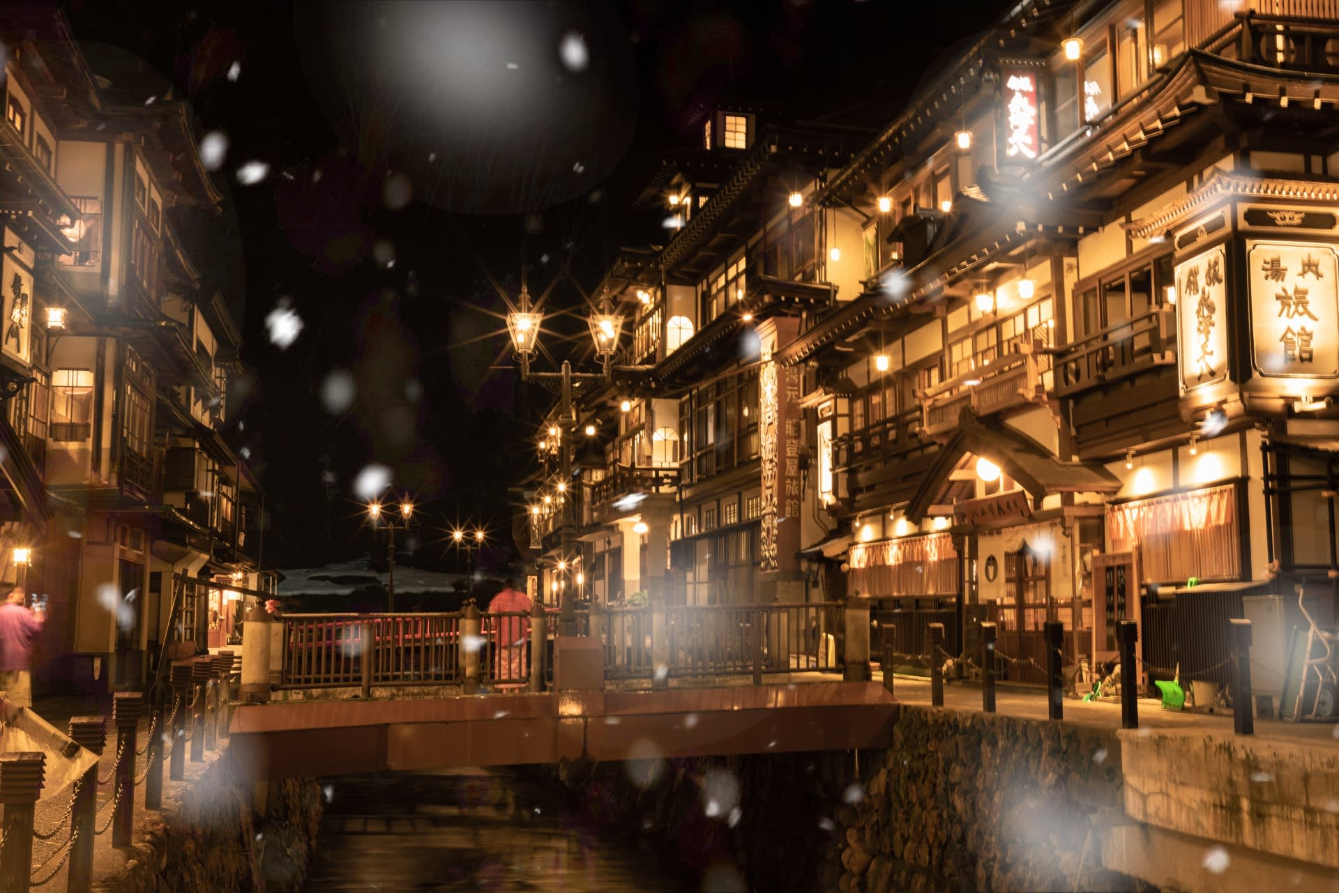 * 긴잔 온천: 전설 속 '센과 치히로의 행방불명' 장면 속으로 들어가 다이쇼 로망과 등불이 비치는 눈 덮인 몽환적인 온천 거리를 느껴보세요.