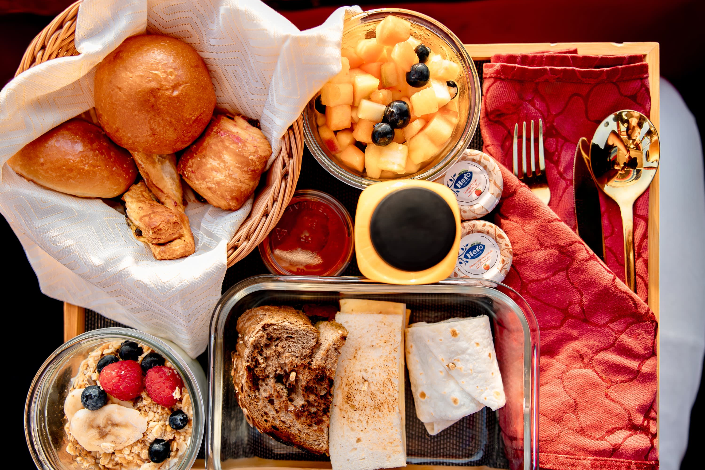 * 갓 내린 아랍 커피, 제철 과일 및 기타 맛있는 음식이 제공되는 하늘의 고요함 속에서 특별한 아침 식사를 즐겨보세요